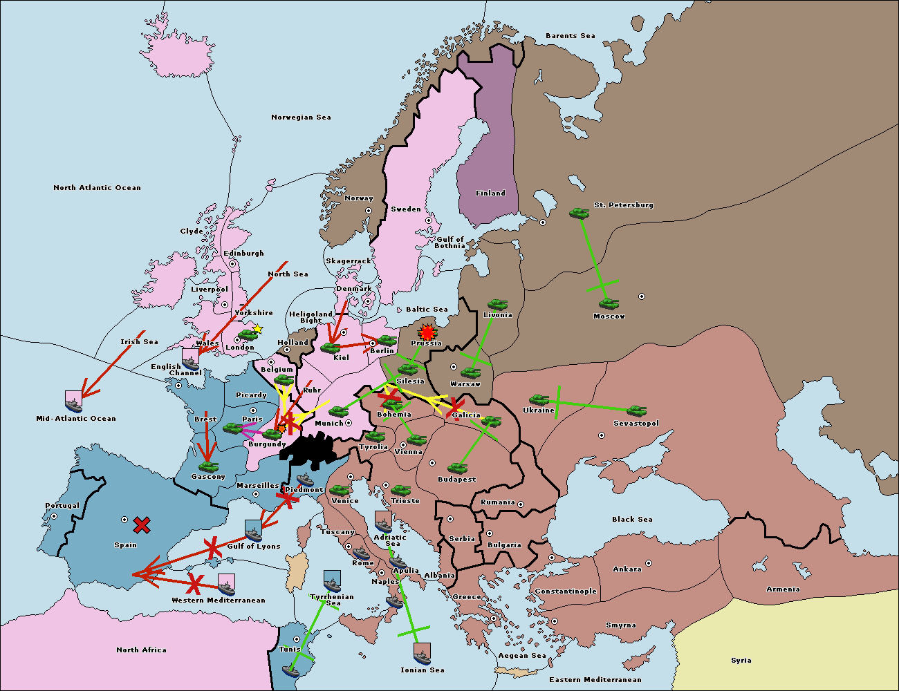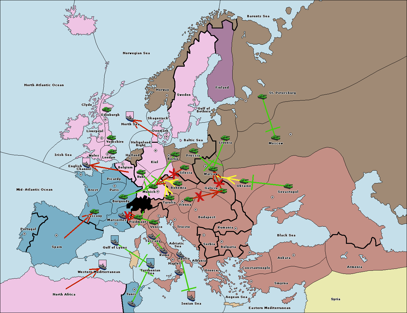 The fleet at Tyrrhenian Sea support move to Tunis from Ionian Sea.