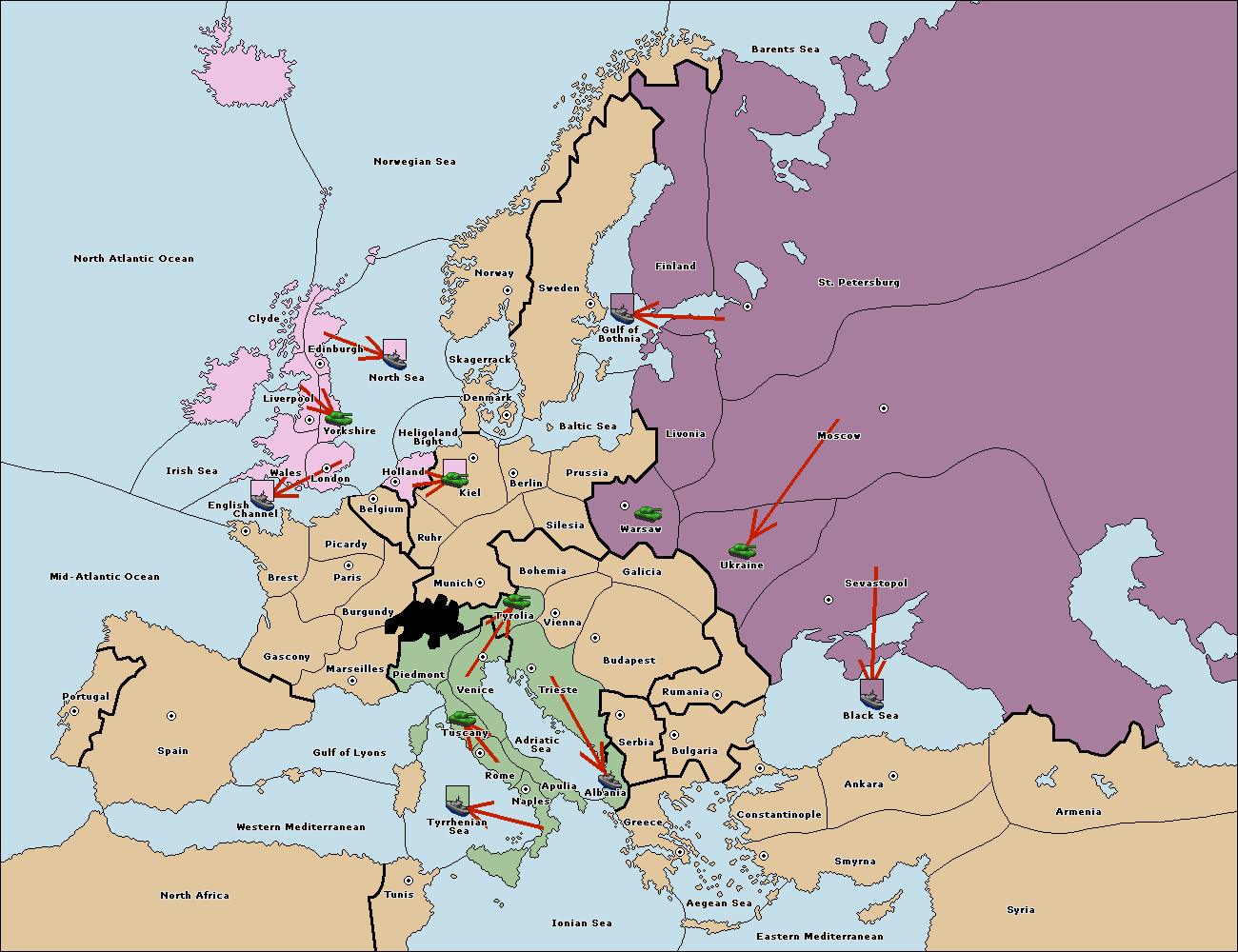 The fleet at St. Petersburg (South Coast) move to Gulf of Bothnia.