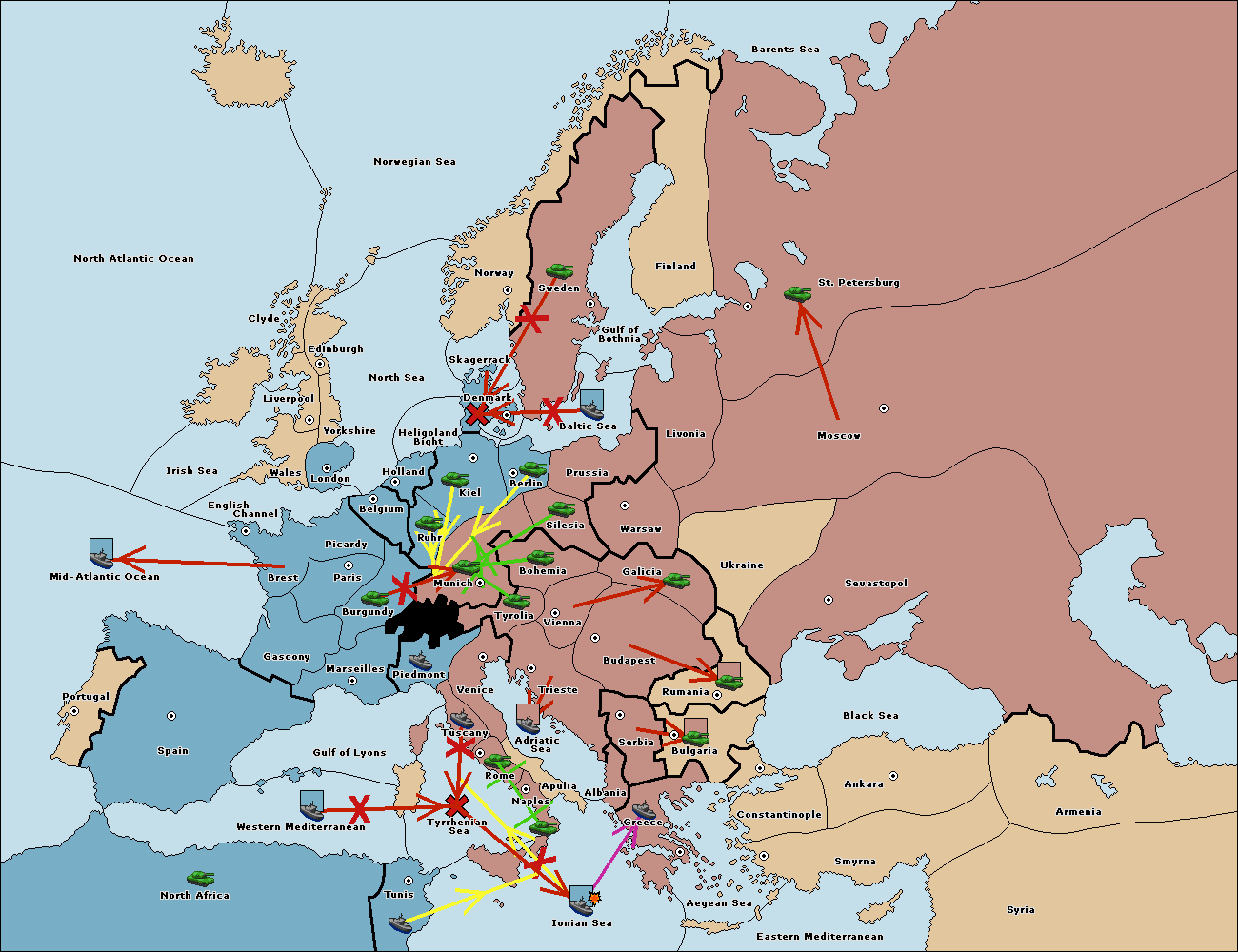 The fleet at Mid-Atlantic Ocean move to Western Mediterranean.