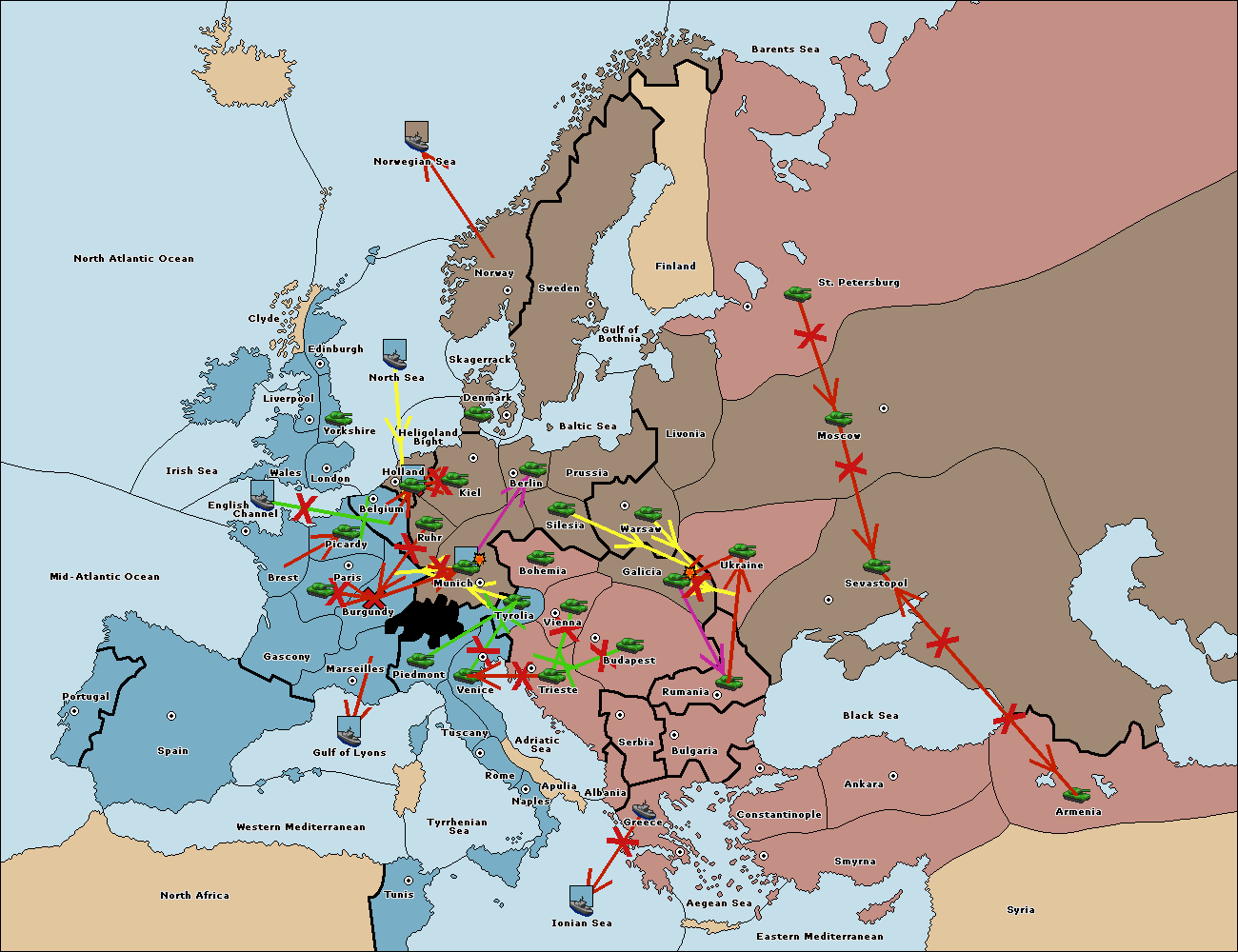 The army at Tyrolia move to Trieste.