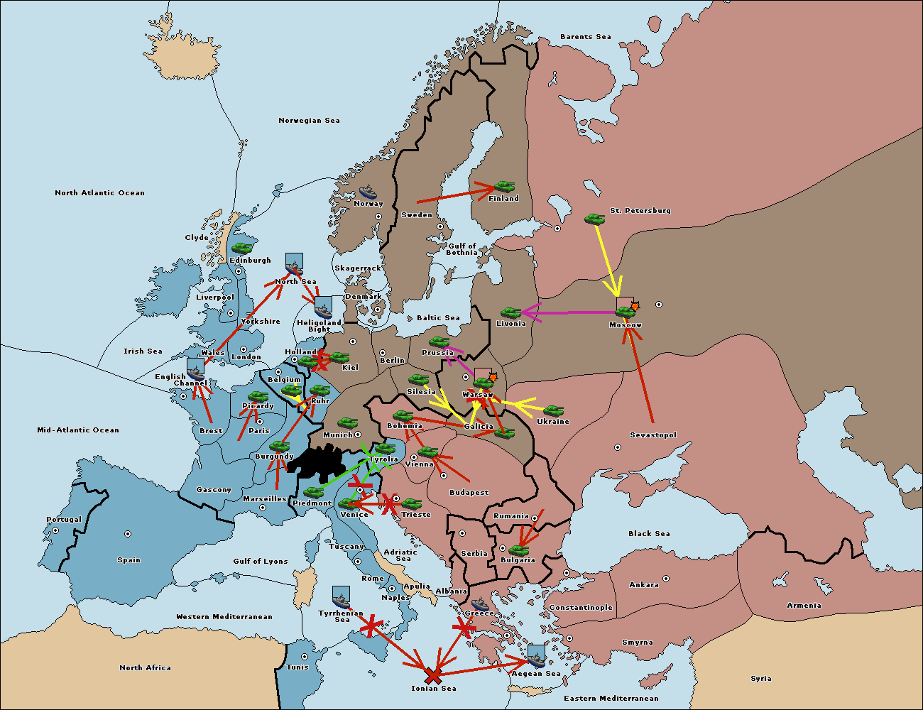 The fleet at Mid-Atlantic Ocean move to Western Mediterranean.