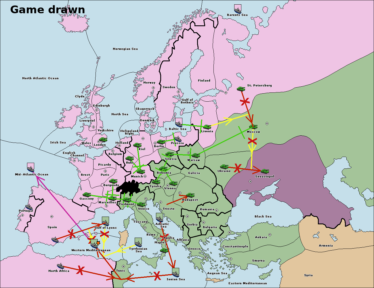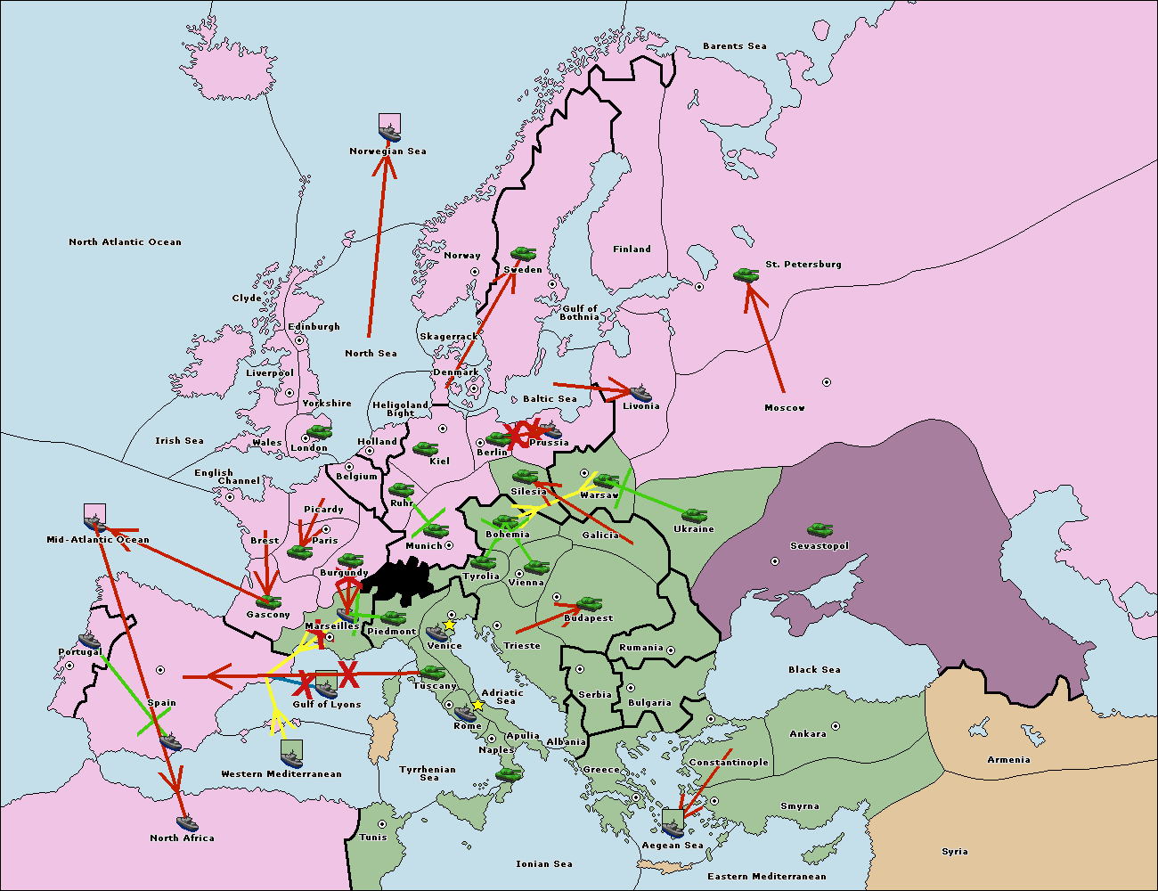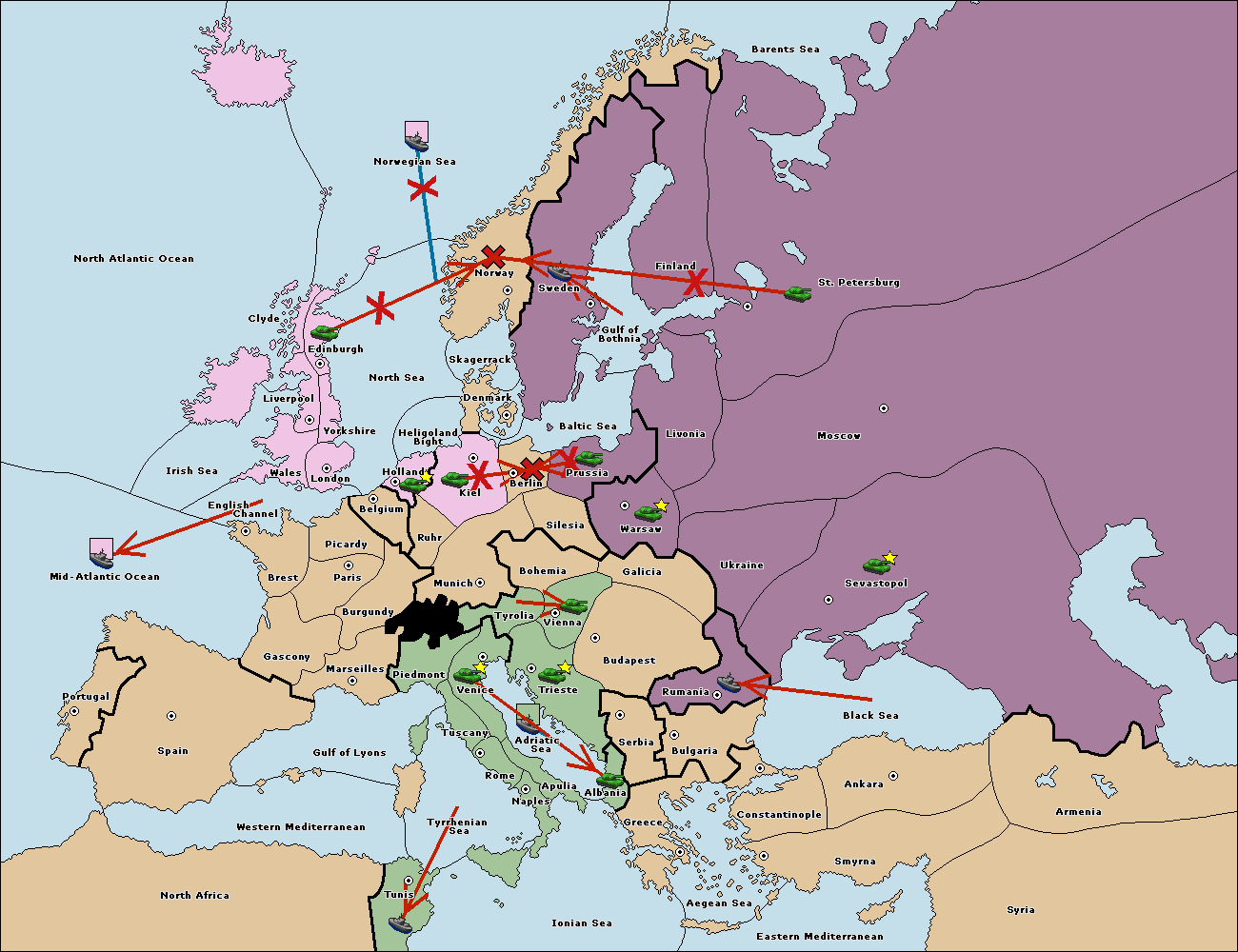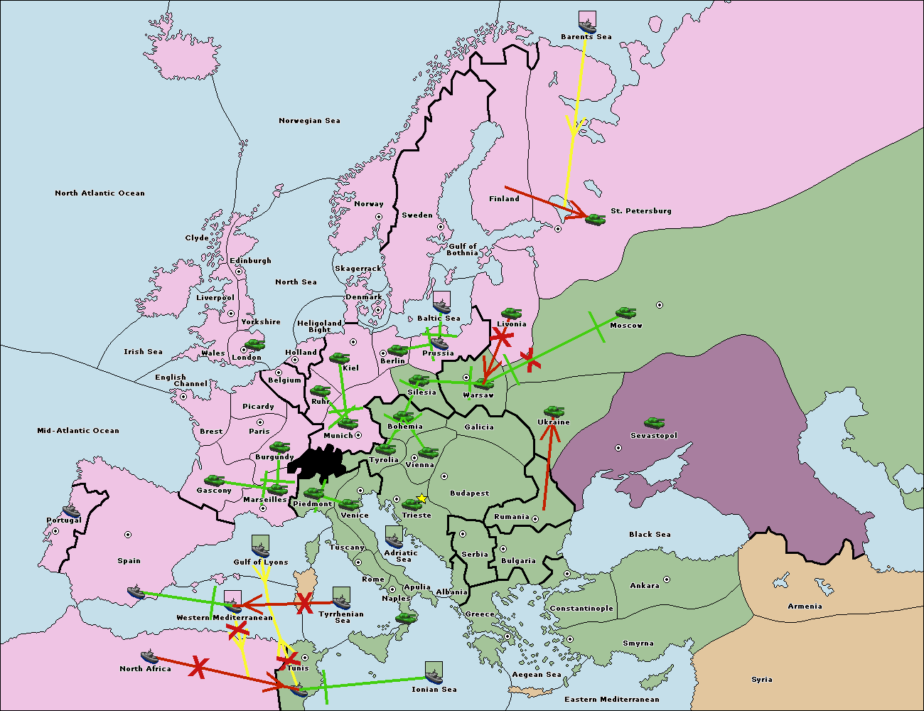 The fleet at Bulgaria (North Coast) move to Constantinople.