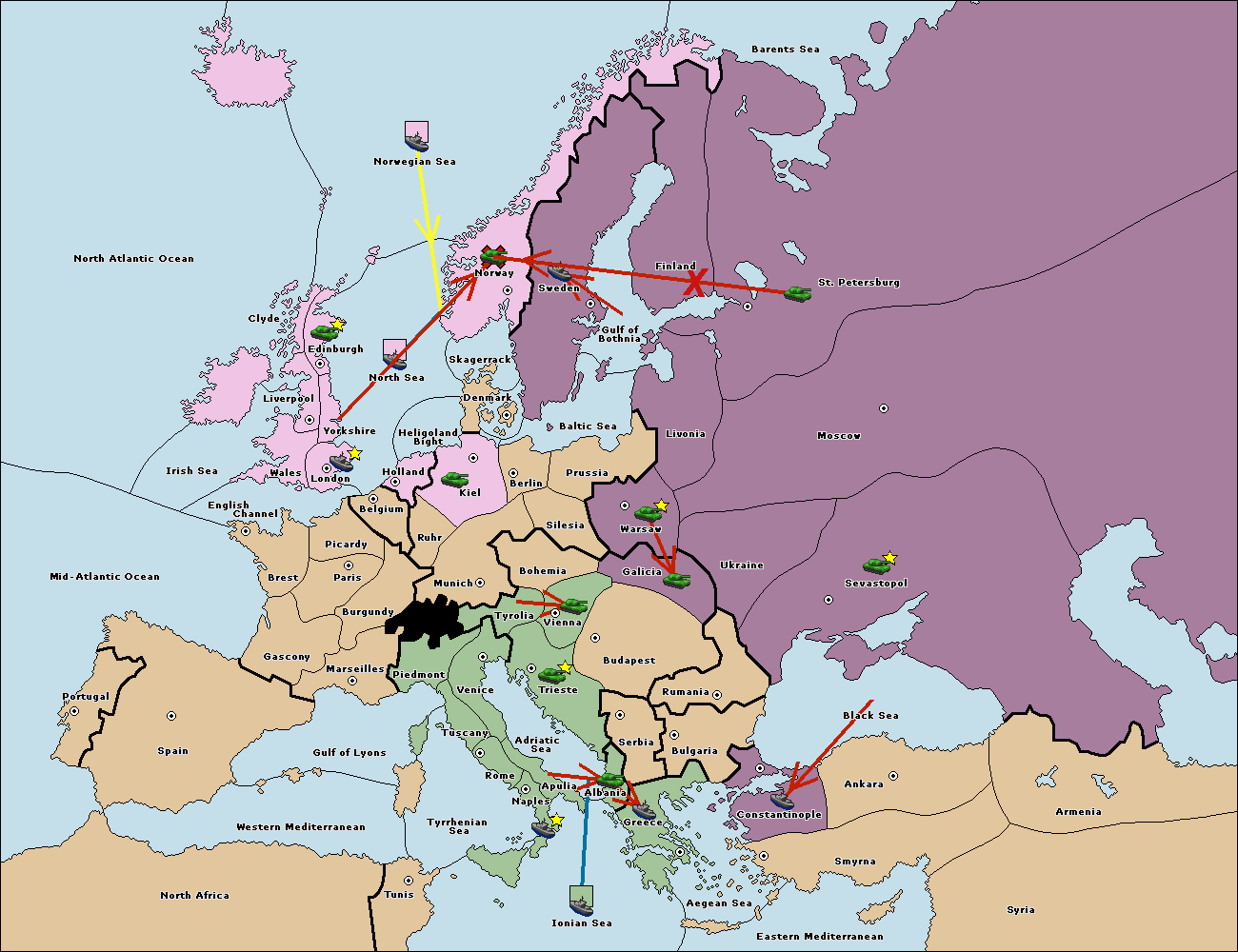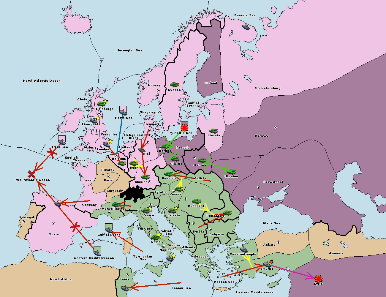 The fleet at Bulgaria (South Coast) move to Constantinople.