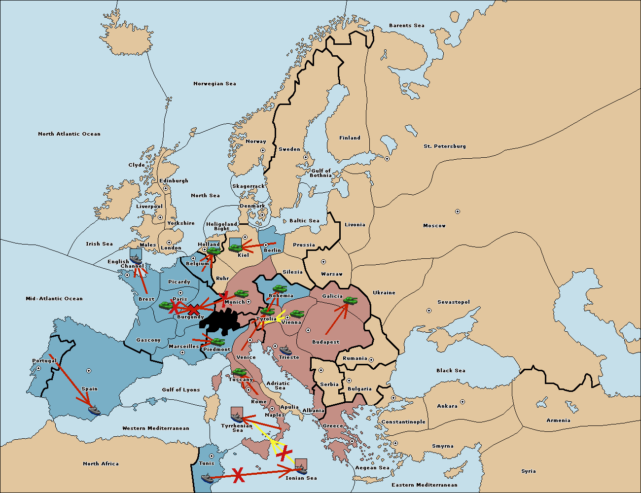 The army at Tyrolia support move to Bohemia from Vienna.