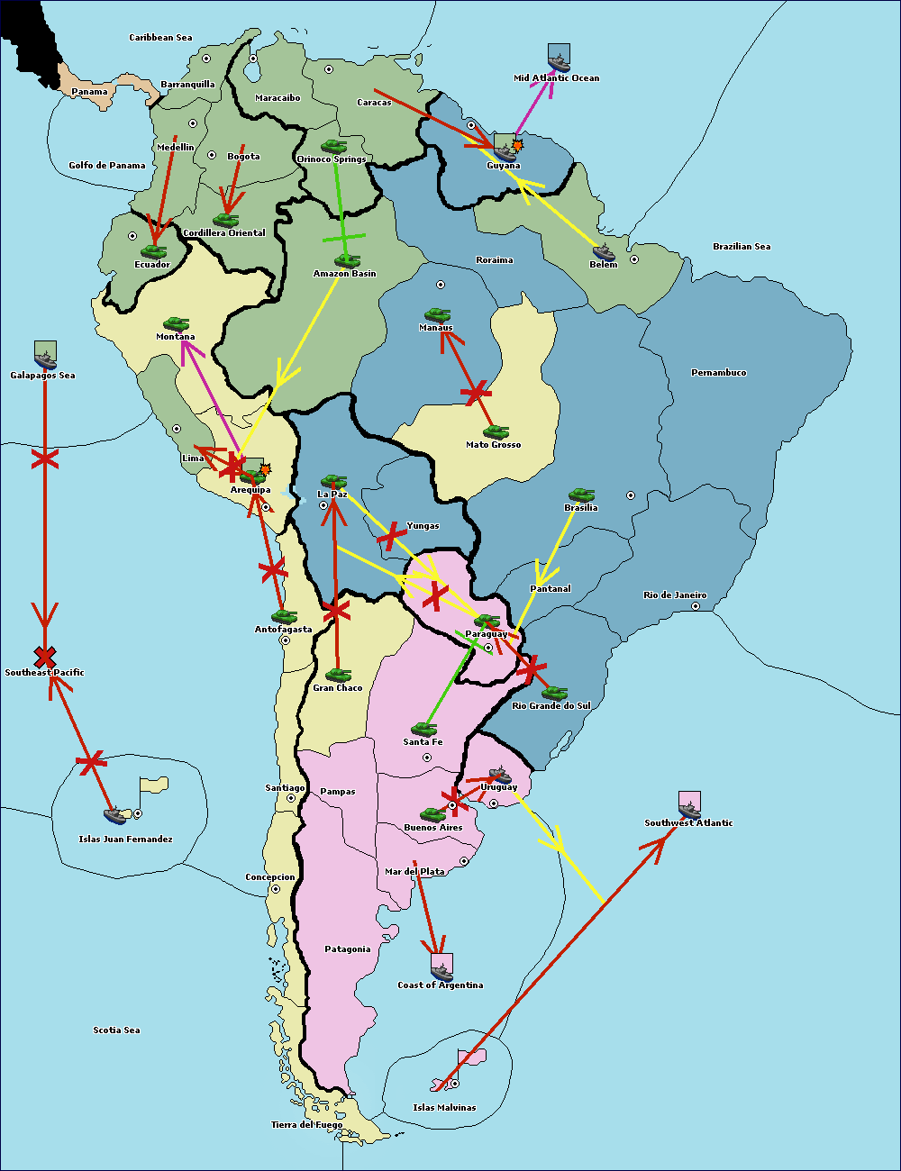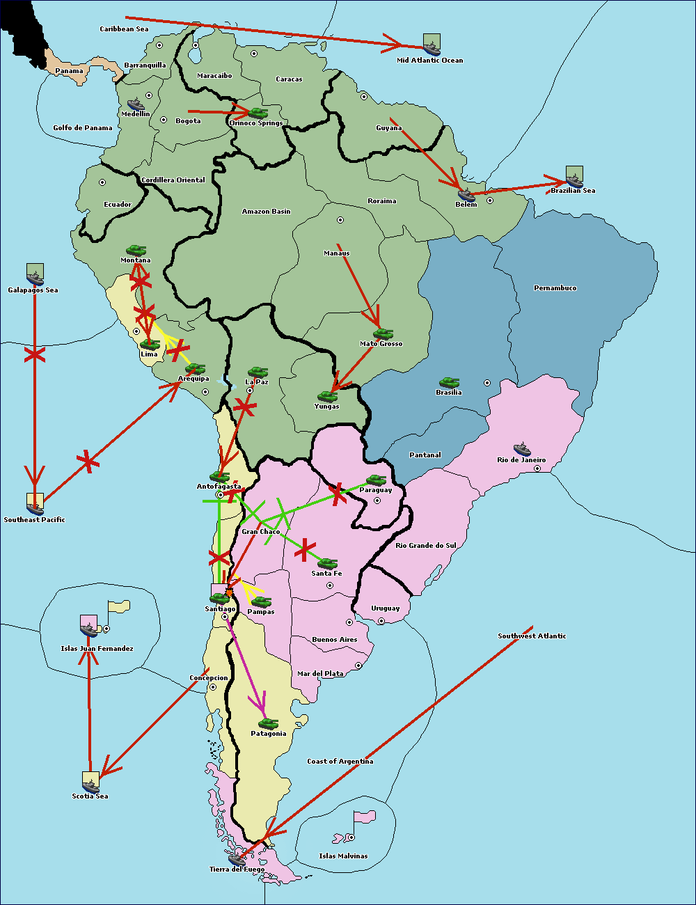 The army at Orinoco Springs support hold to Amazon Basin.