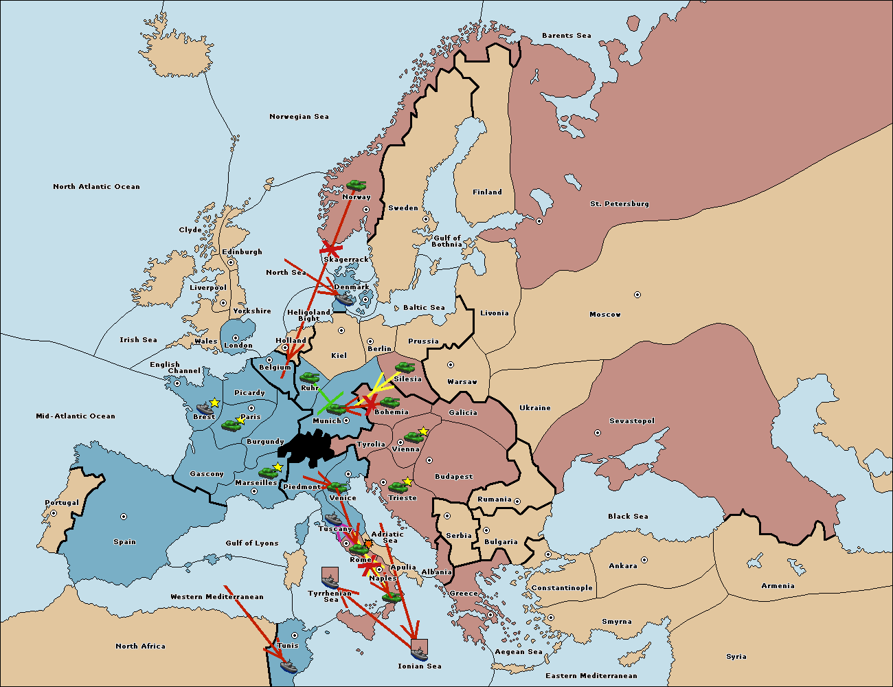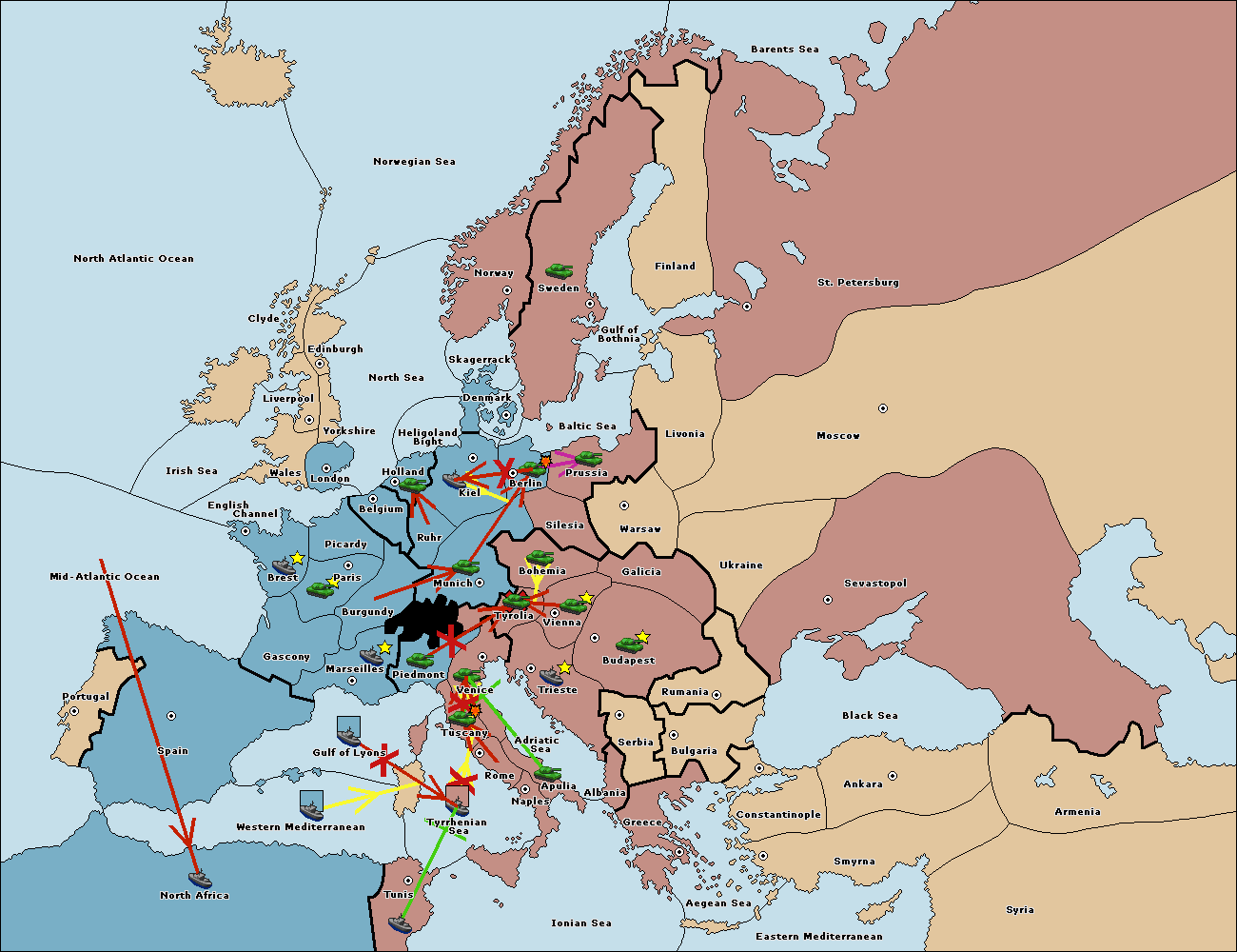 The fleet at Tyrrhenian Sea move to Gulf of Lyons.