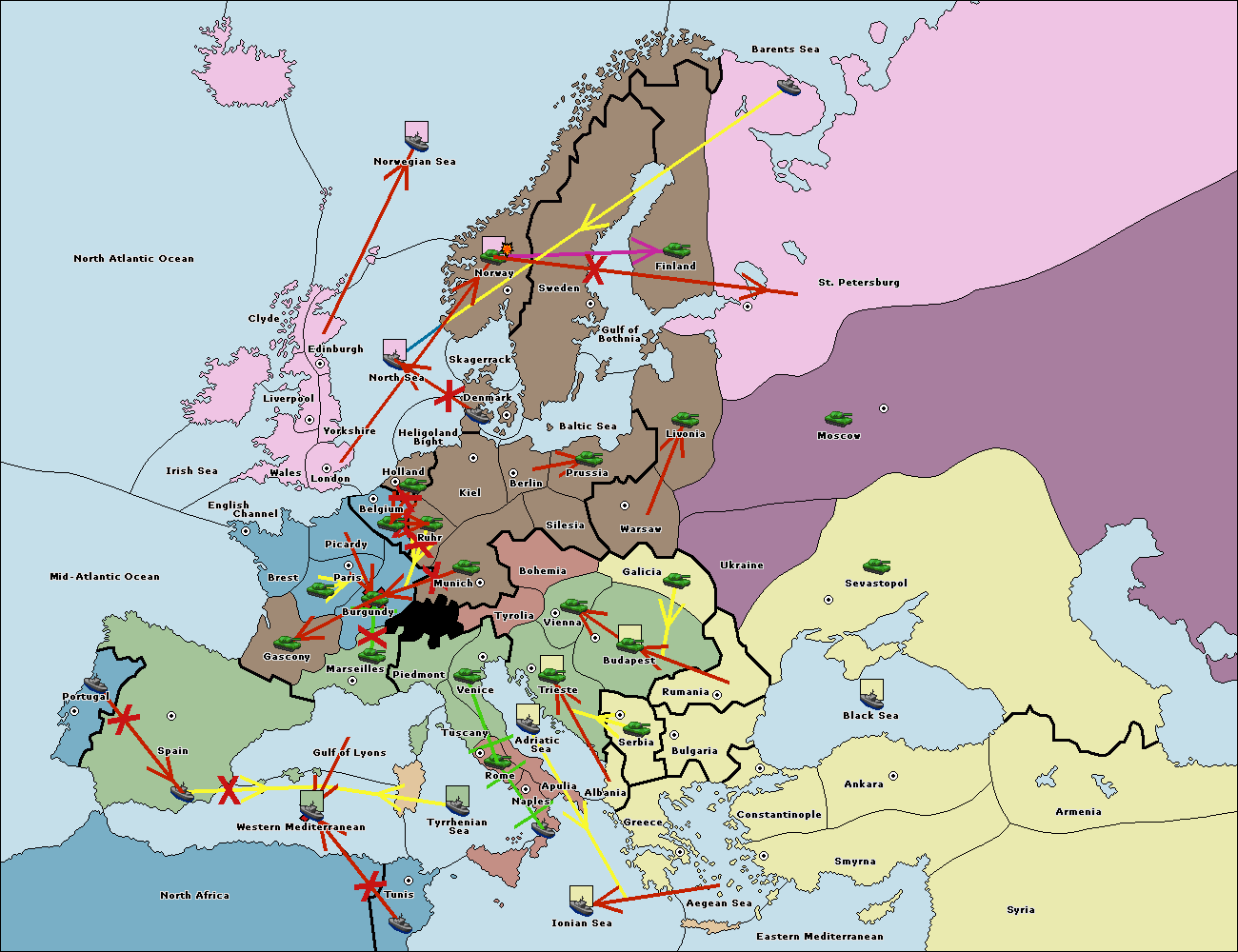 The fleet at Tunis support move to Ionian Sea from Naples.
