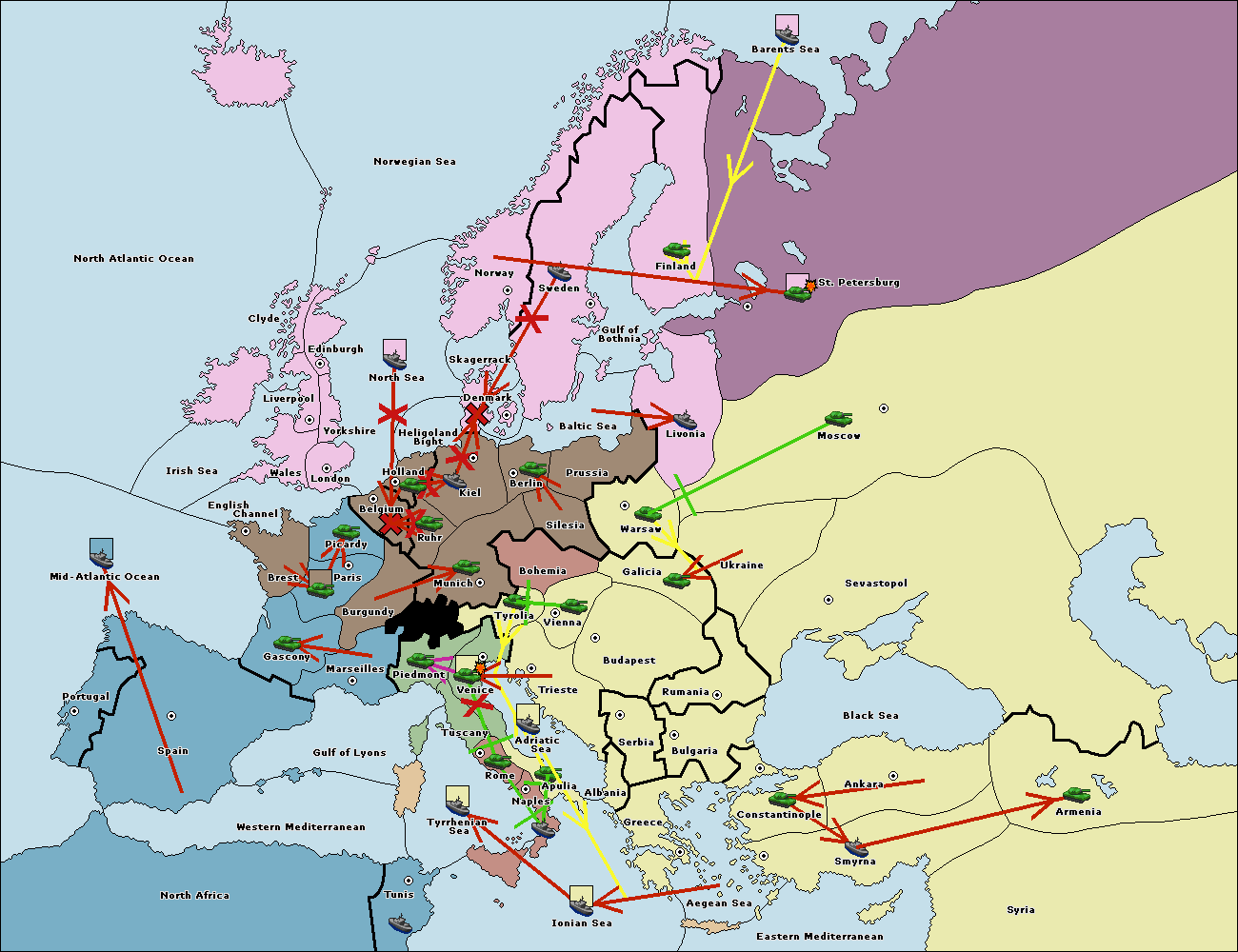 The fleet at Barents Sea move to St. Petersburg (North Coast).