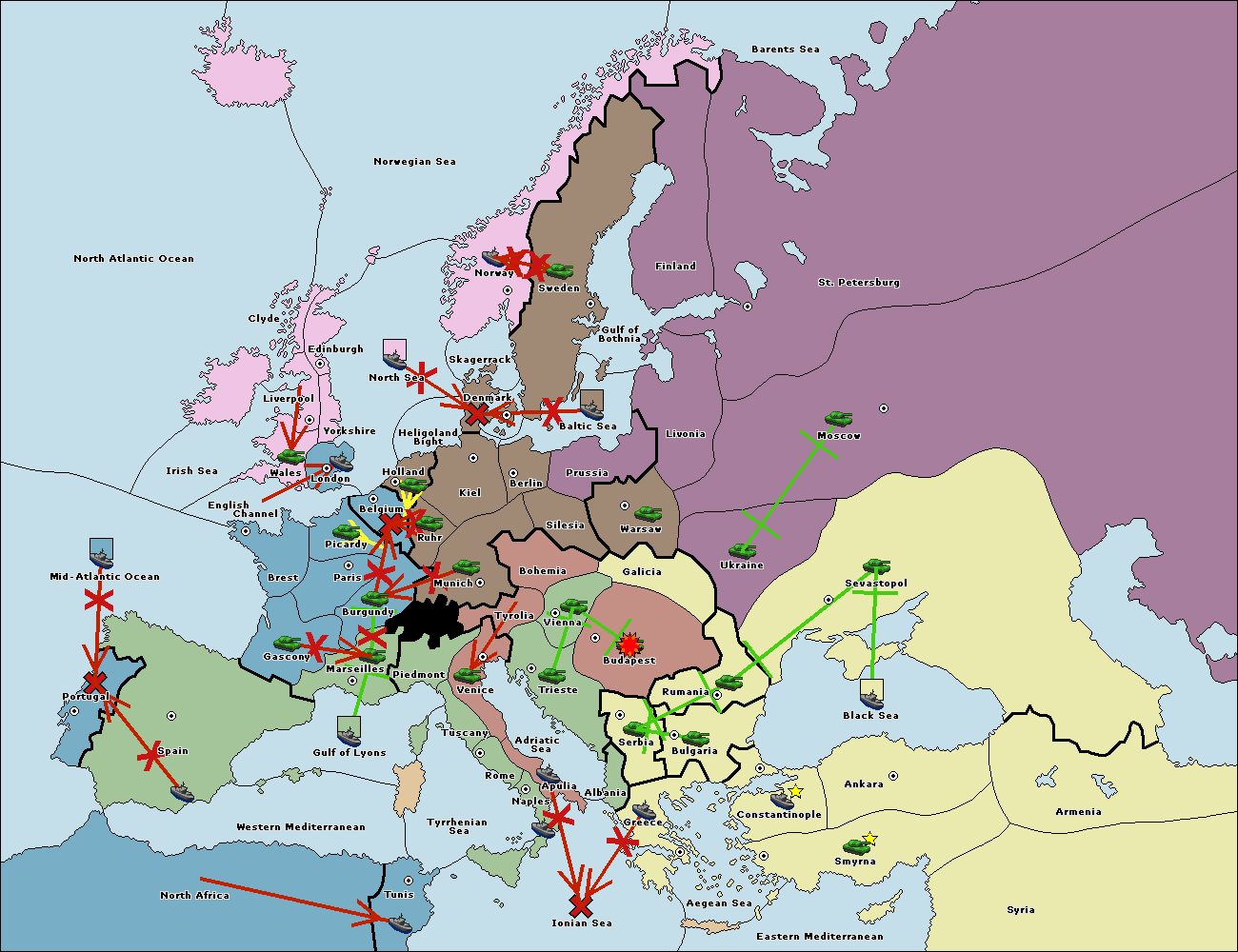 The fleet at Spain (South Coast) support hold to Mid-Atlantic Ocean.