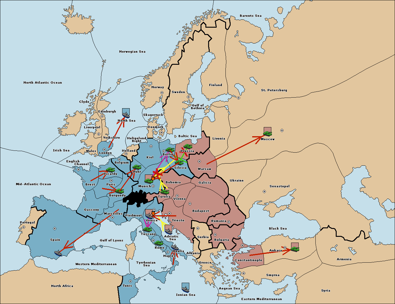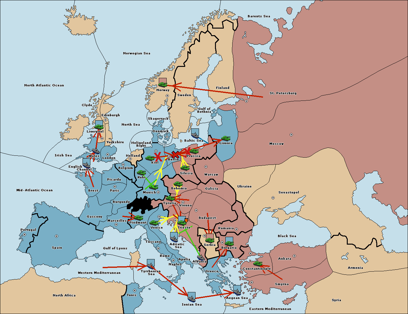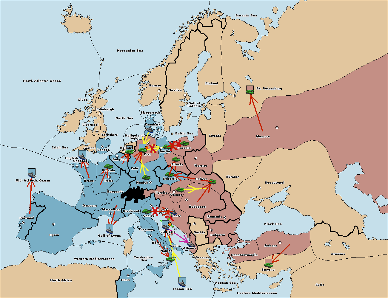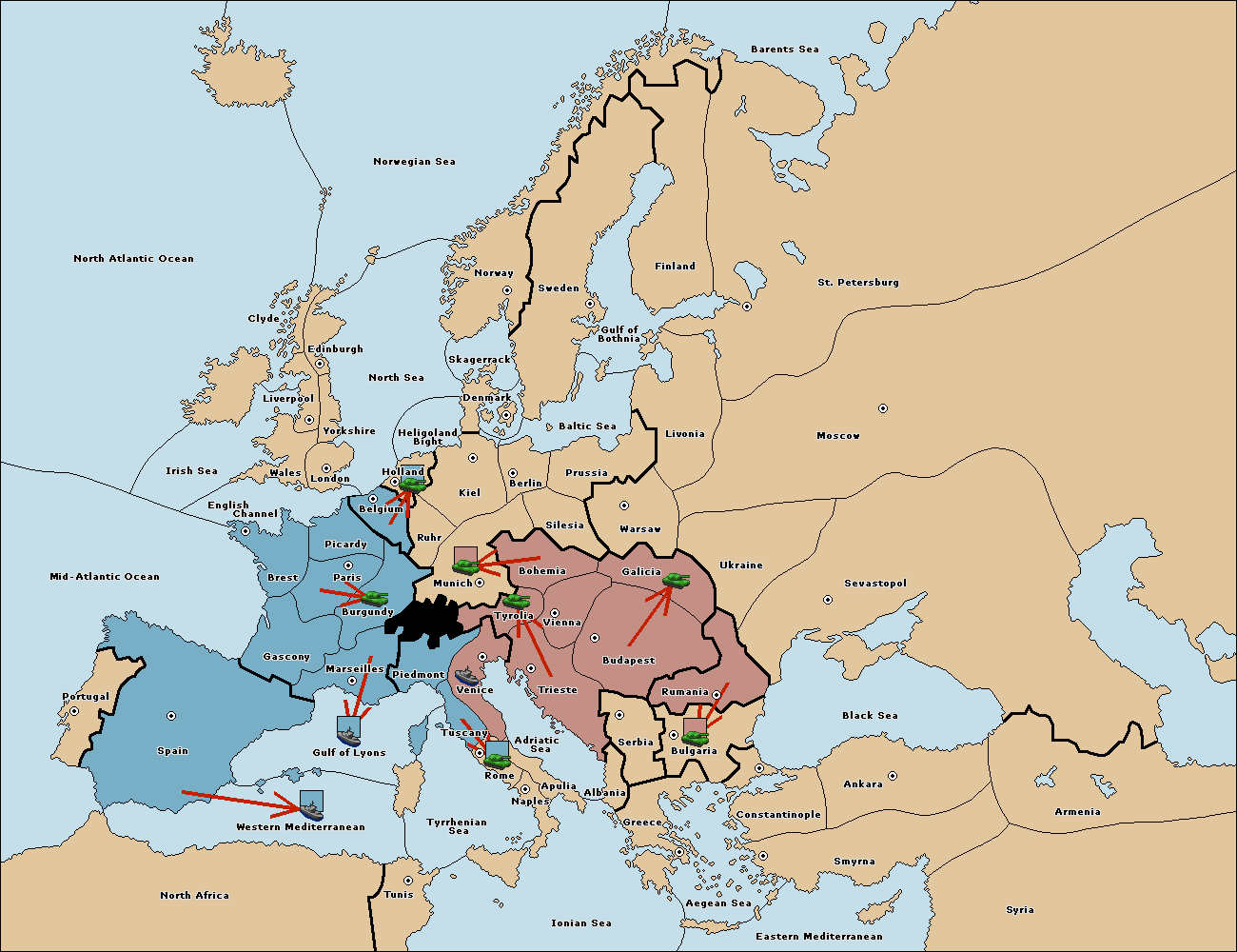 The fleet at Adriatic Sea support move to Trieste from Tyrolia.