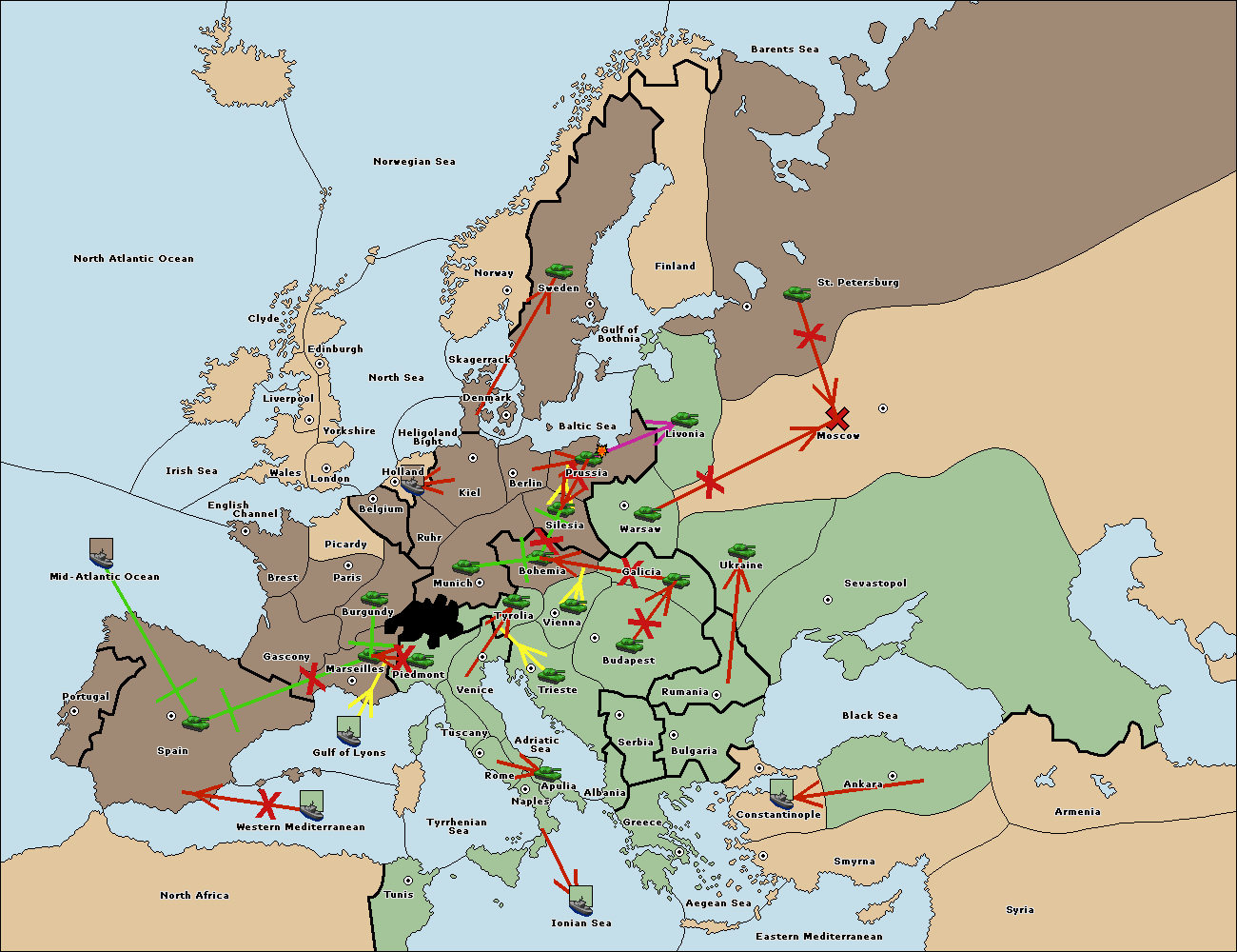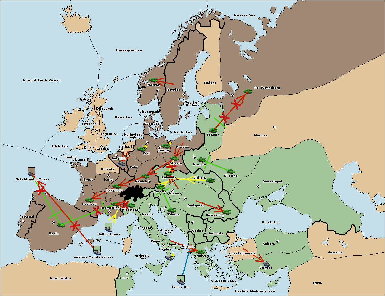 The fleet at Mid-Atlantic Ocean move to Western Mediterranean.