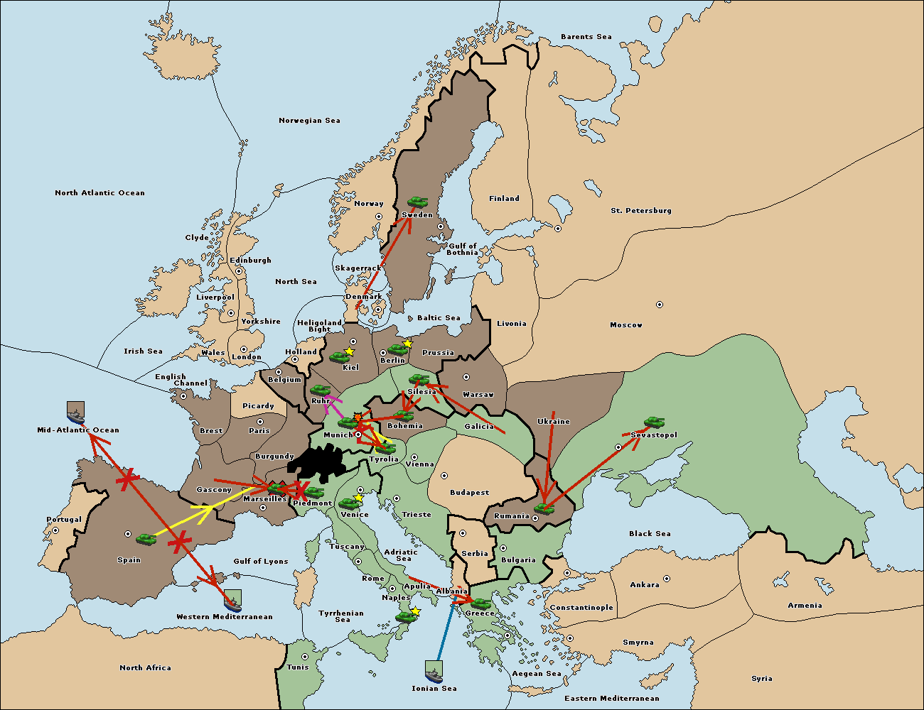 The fleet at Gulf of Lyons support move to Marseilles from Piedmont.