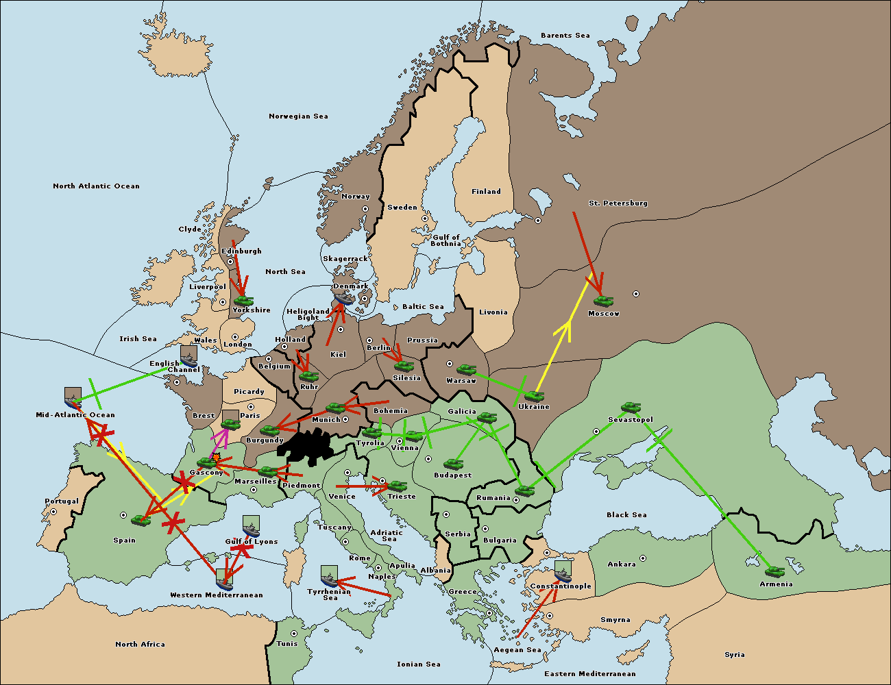 The fleet at Mid-Atlantic Ocean move to Western Mediterranean.