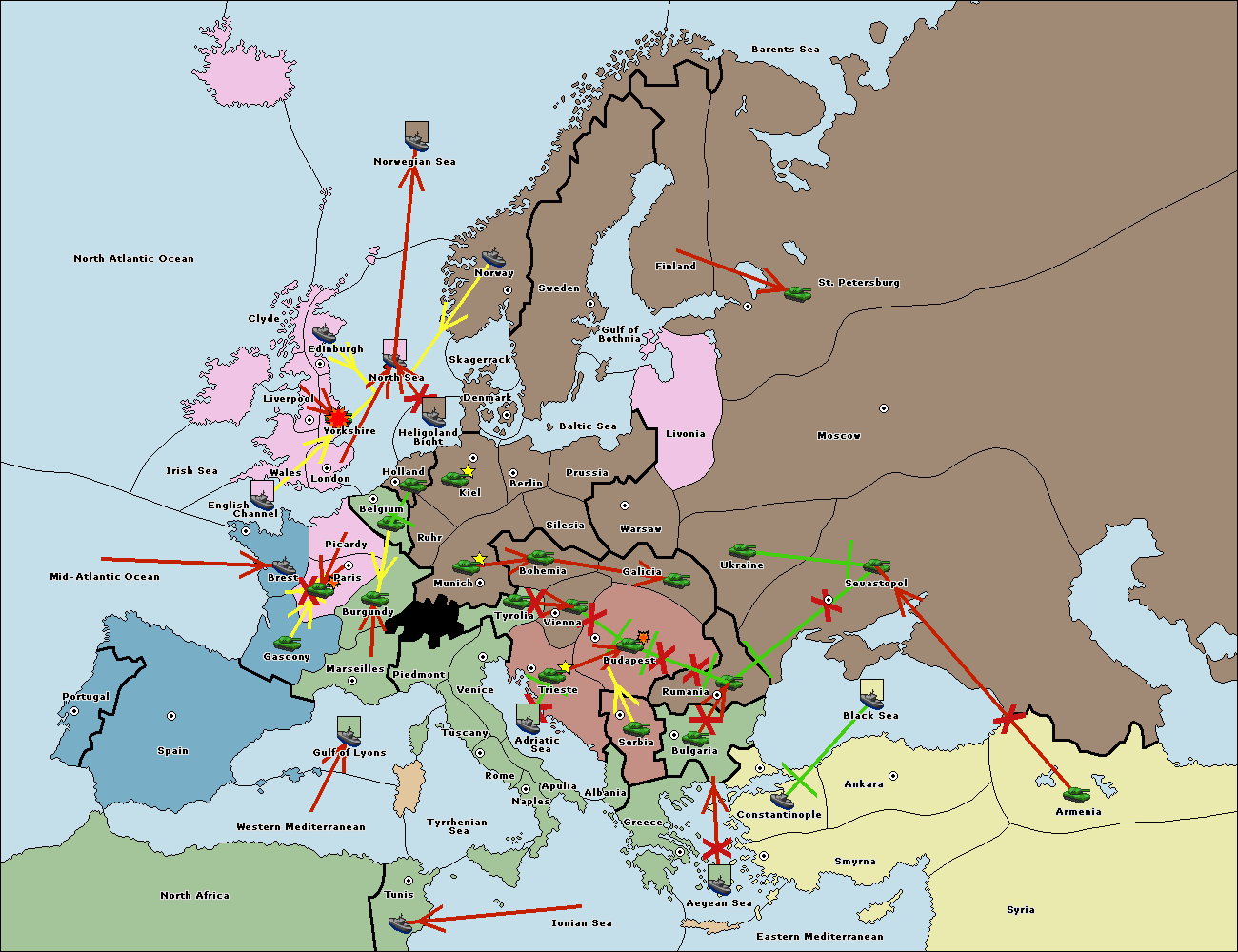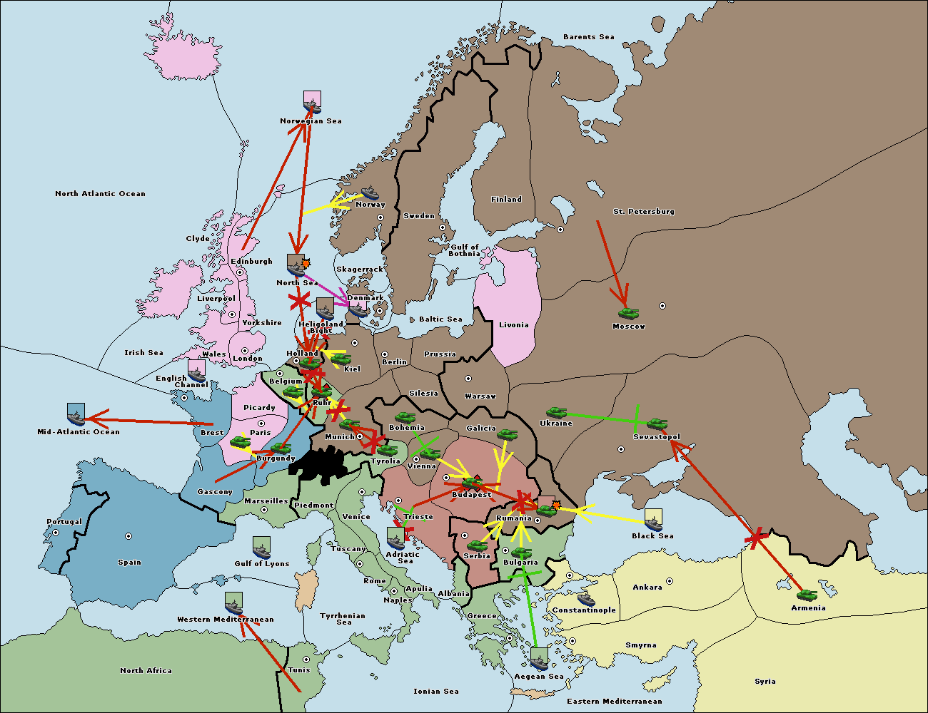 The fleet at North Africa move to Mid-Atlantic Ocean.