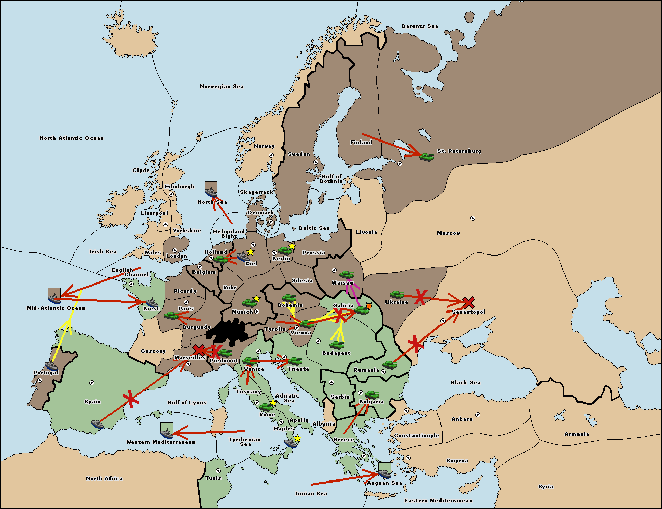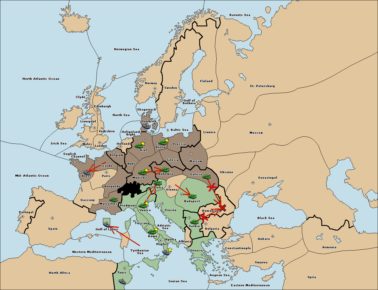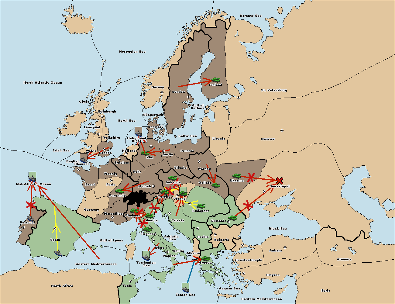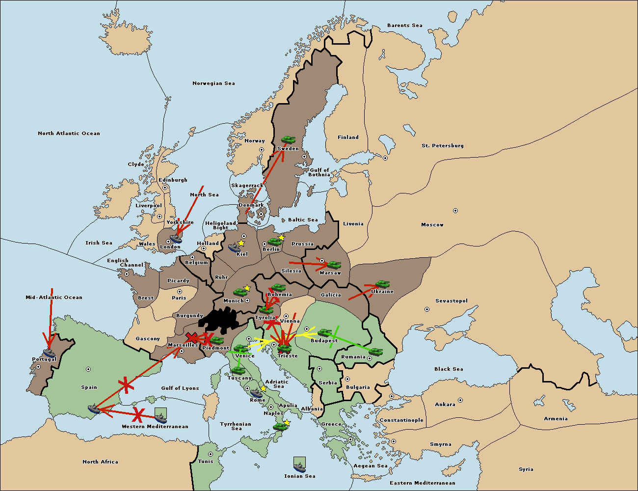 The fleet at Tyrrhenian Sea support hold to Western Mediterranean.
