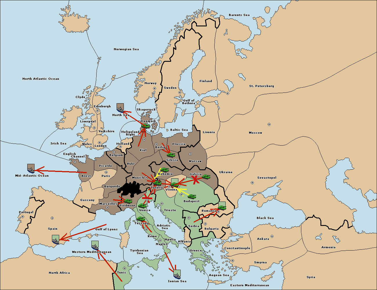 The fleet at Spain (South Coast) support hold to Mid-Atlantic Ocean.