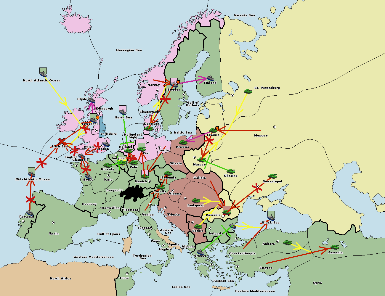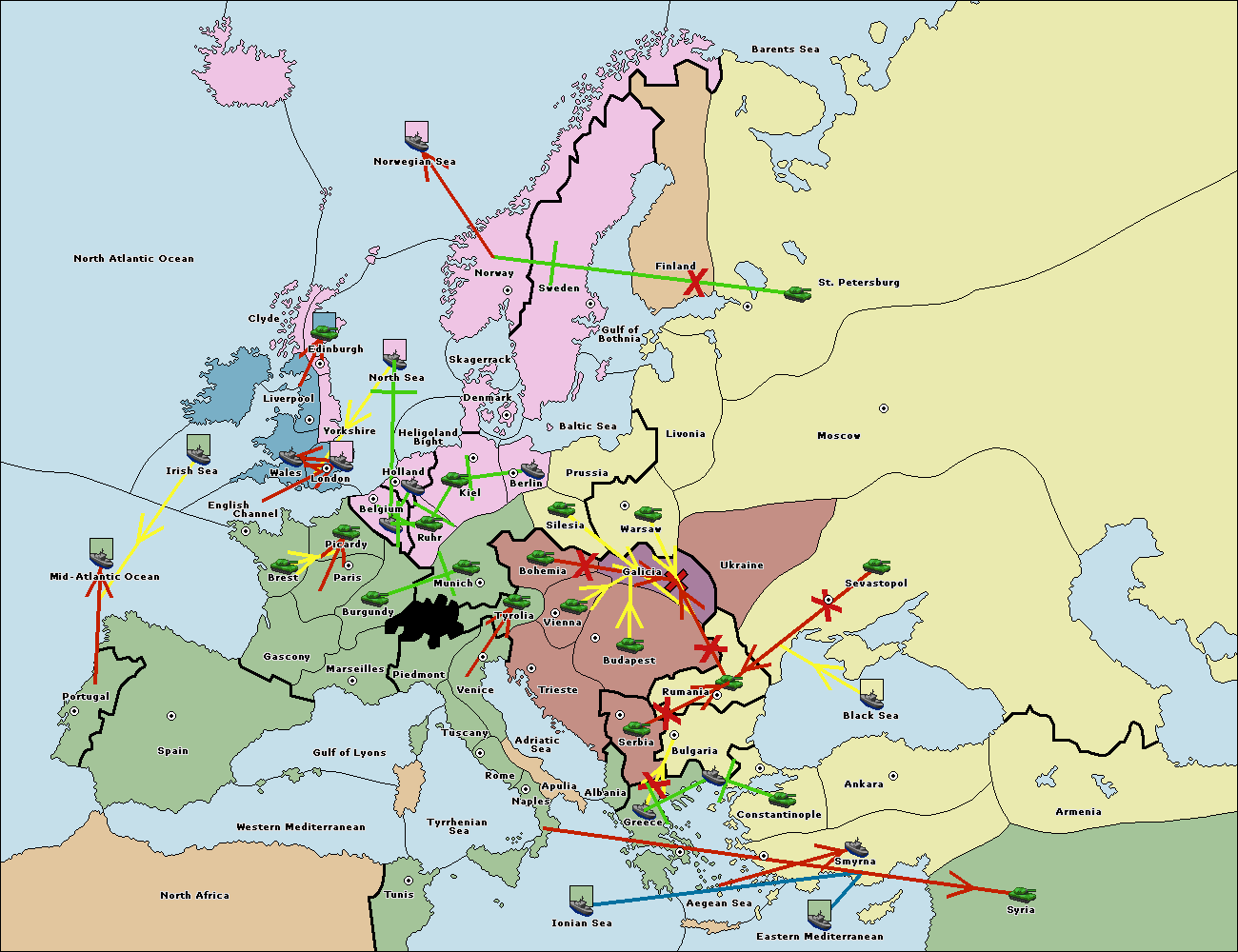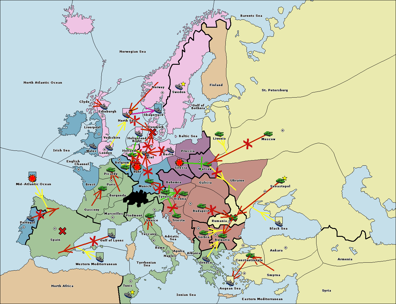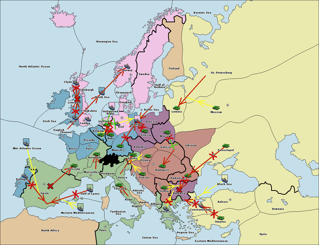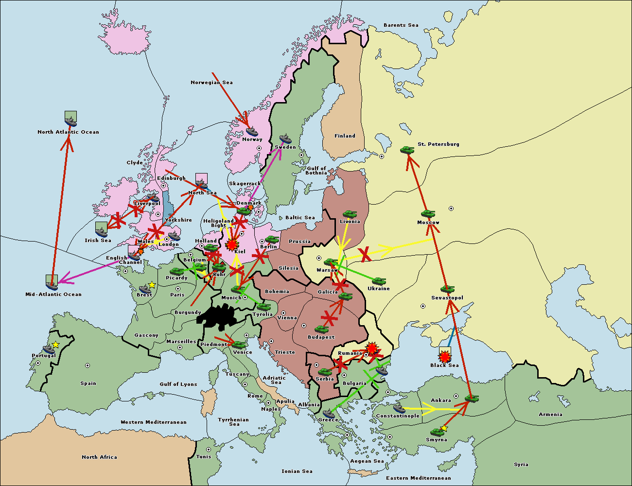 The fleet at Bulgaria (South Coast) support move to Aegean Sea from Smyrna.