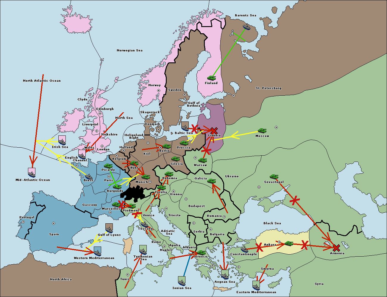 The fleet at Marseilles support move to Gulf of Lyons from Tyrrhenian Sea.