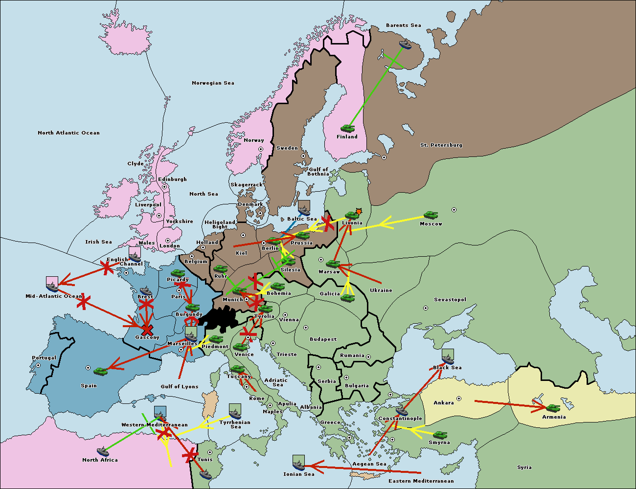 The fleet at North Africa support hold to Western Mediterranean.