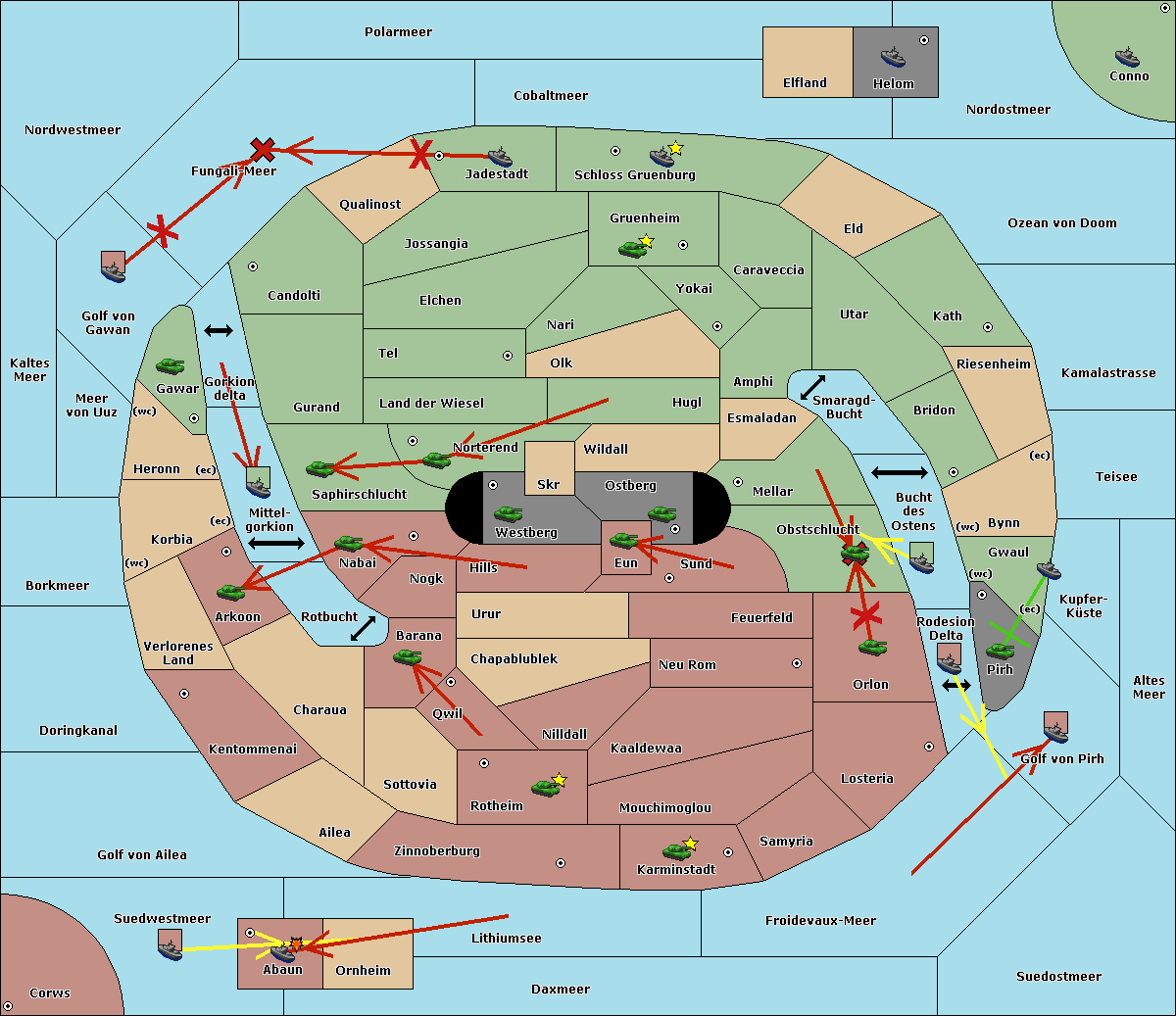The fleet at Schloss Gruenburg move to Ozean von Doom.