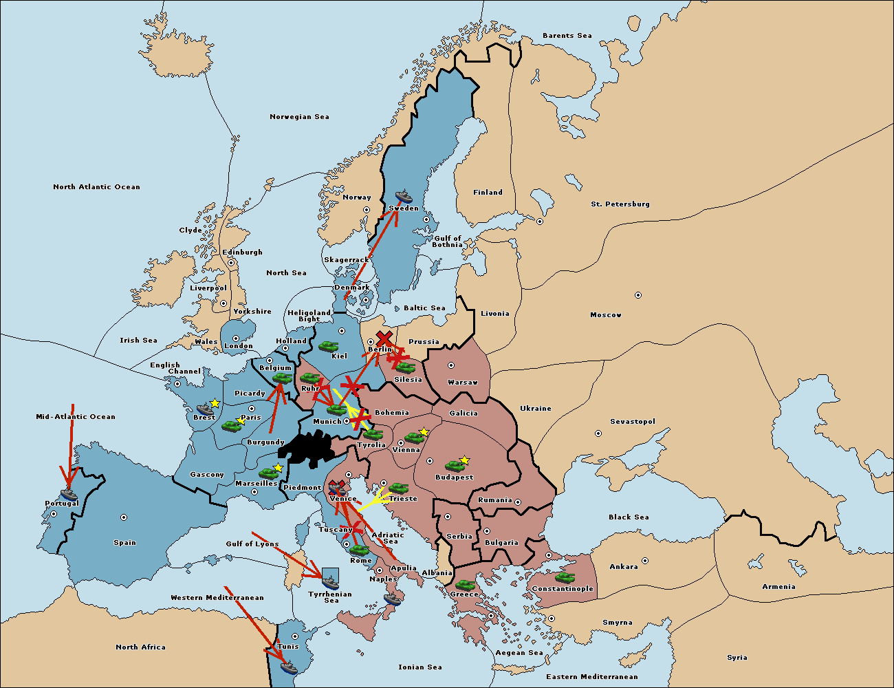 The fleet at Spain (South Coast) move to Western Mediterranean.