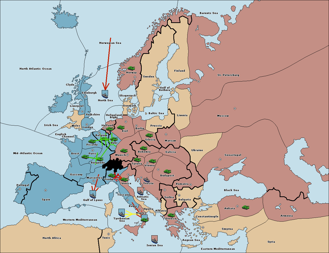The fleet at Ionian Sea support move to Tyrrhenian Sea from Naples.