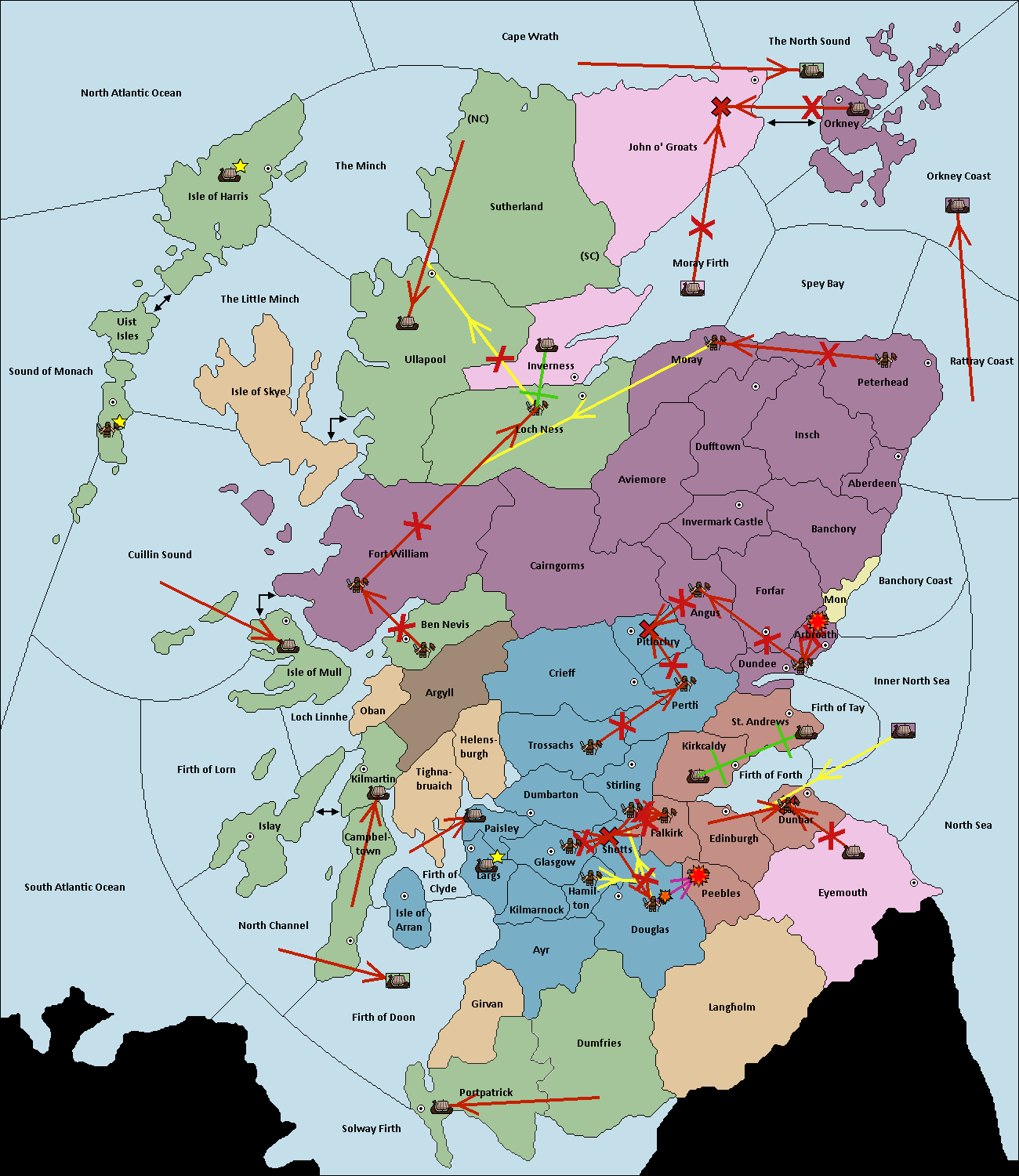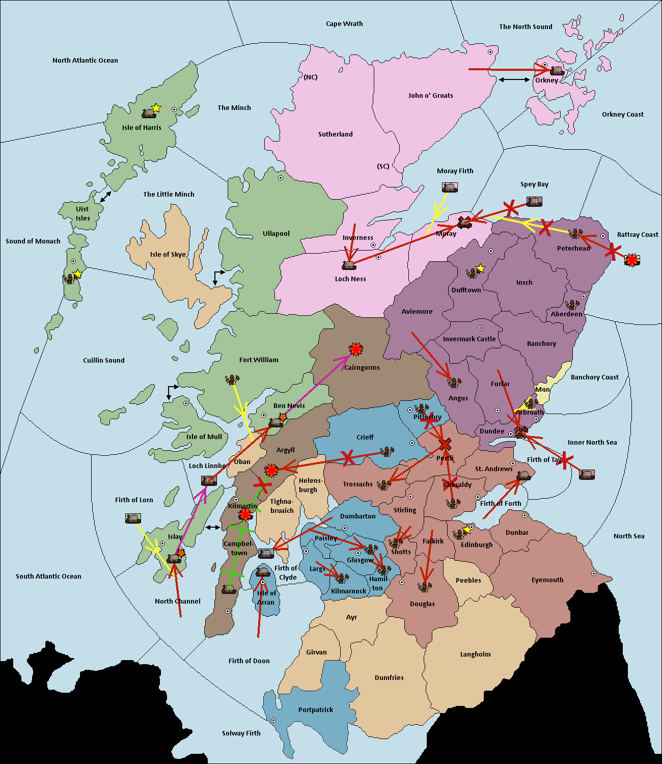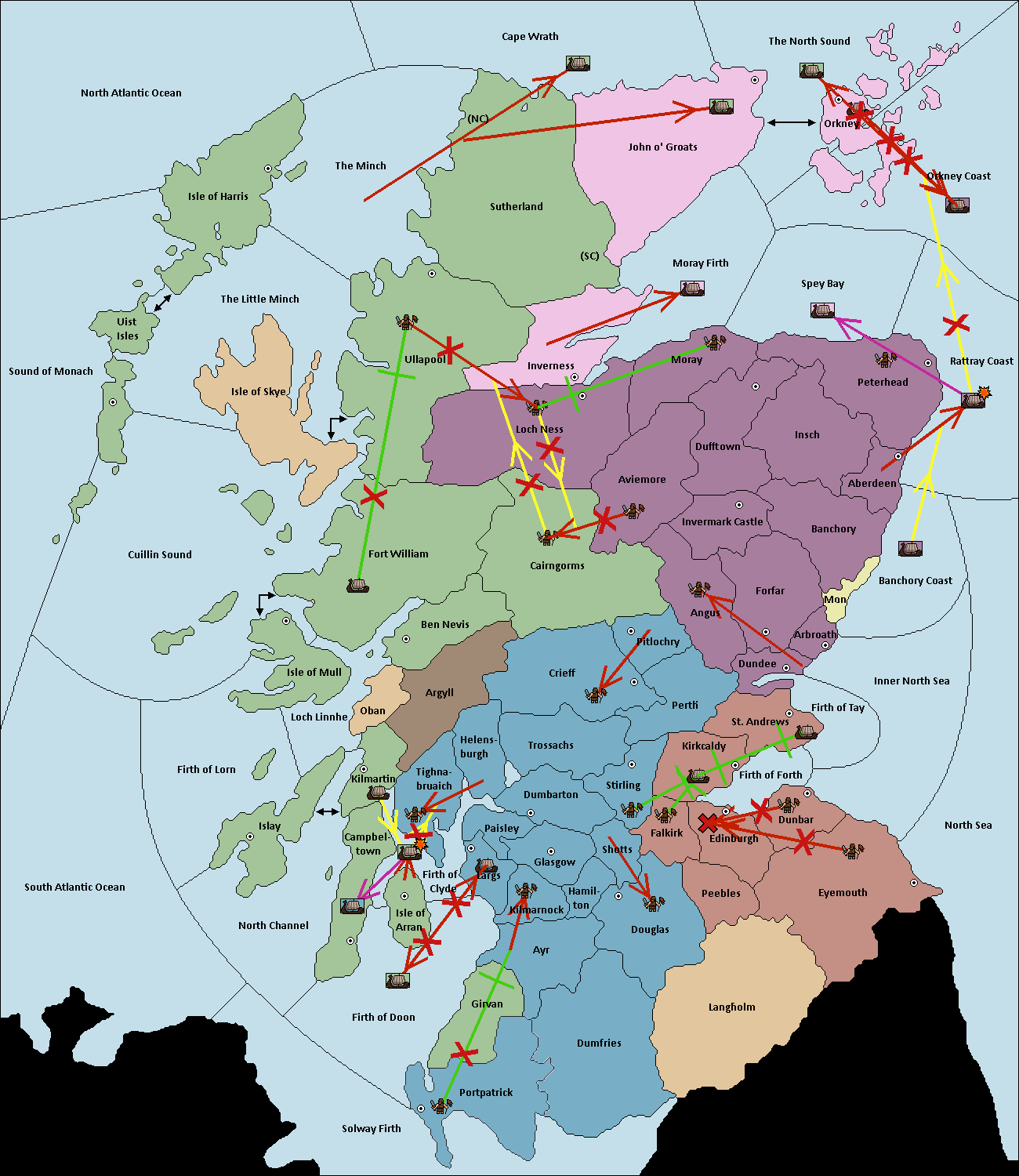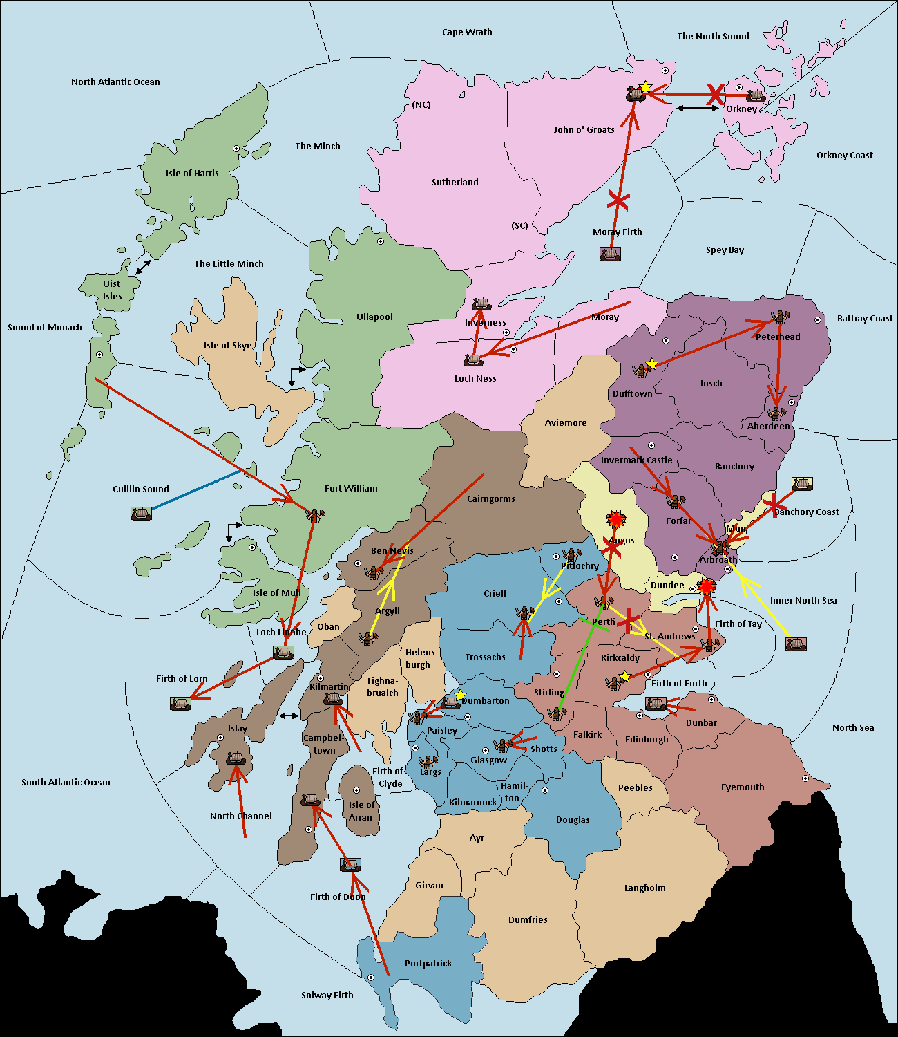 The fleet at Firth of Forth support hold to Inner North Sea.