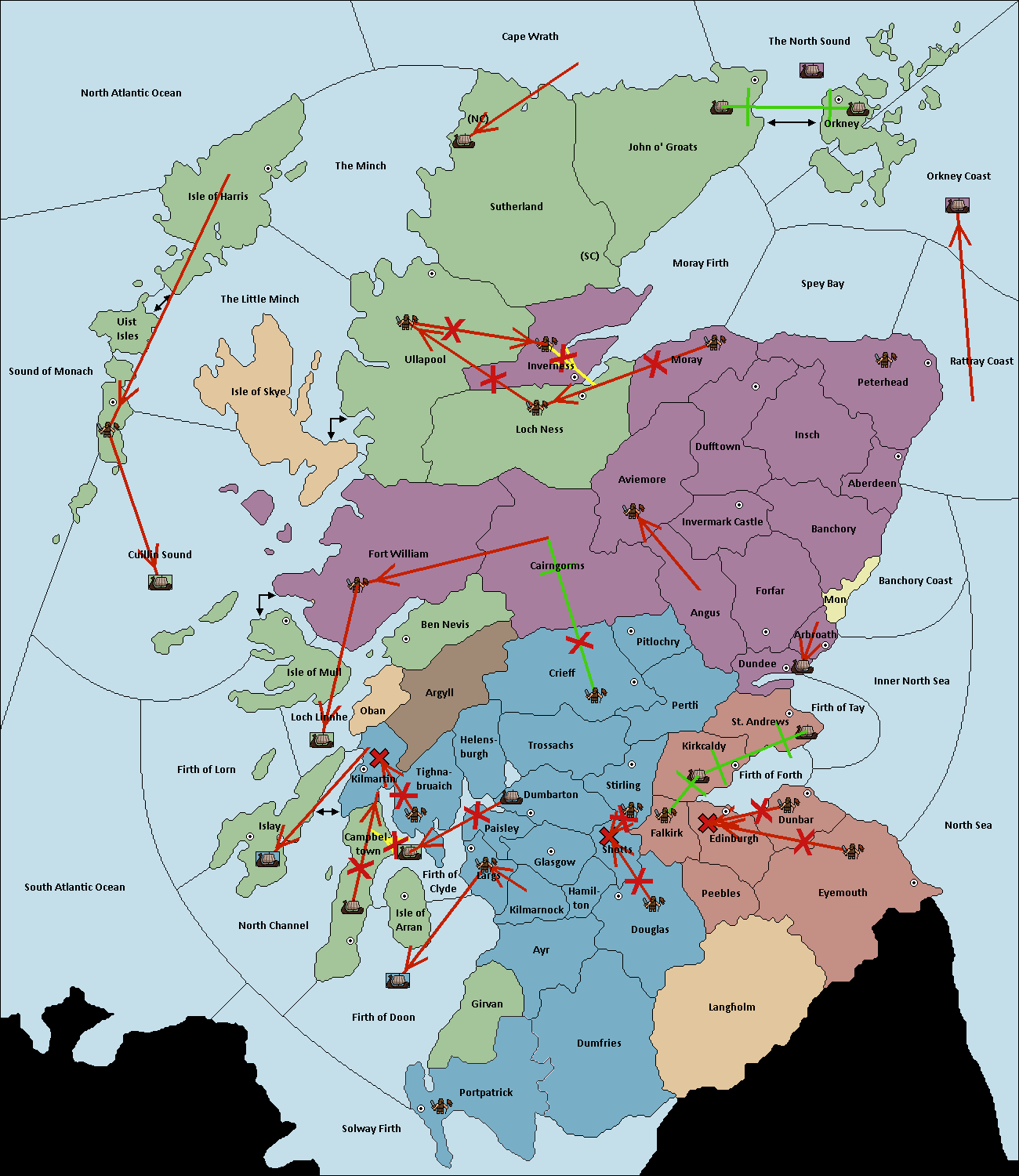 The fleet at Firth of Clyde move to Kilmartin (South Coast).