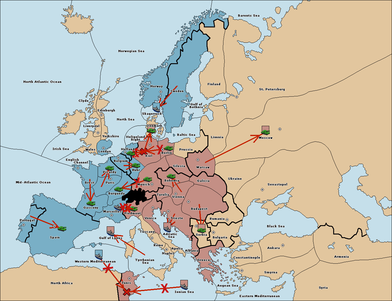The fleet at Gulf of Lyons support move to Marseilles from Piedmont.