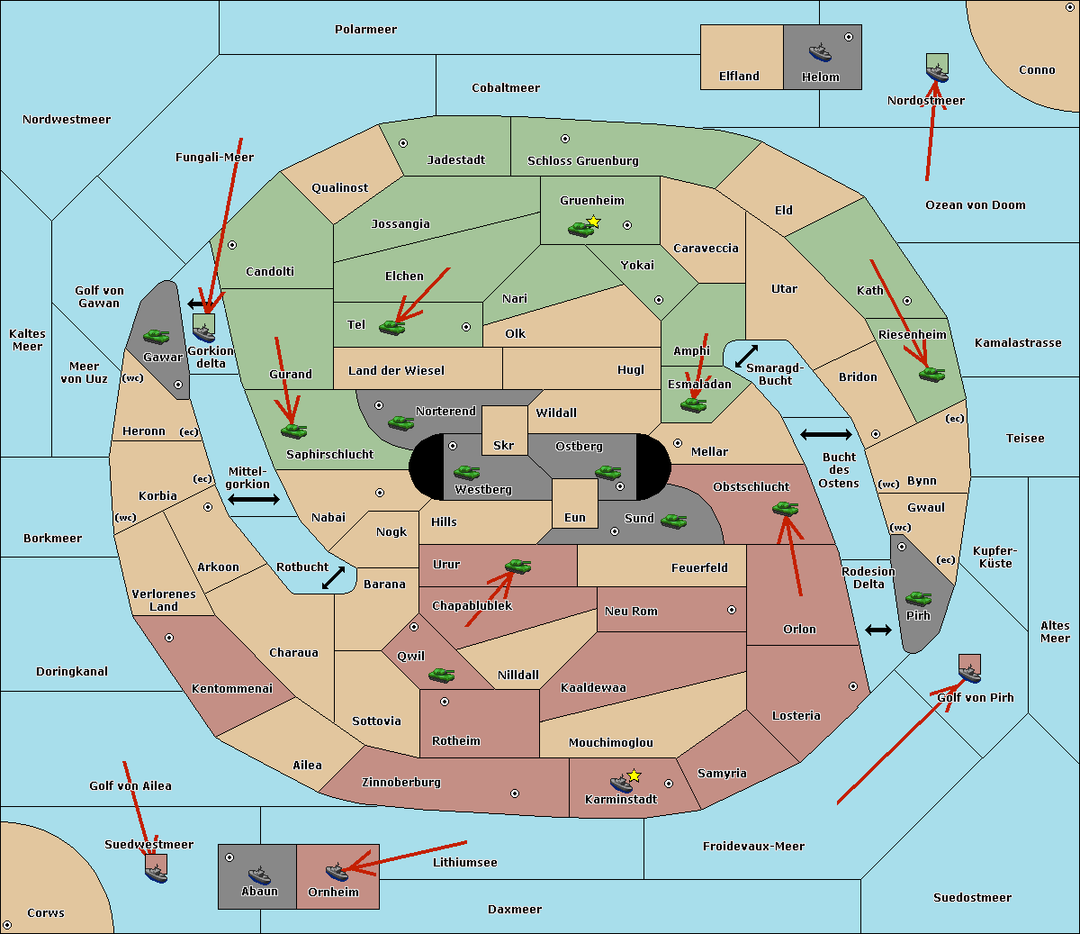 The fleet at Schloss Gruenburg move to Ozean von Doom.