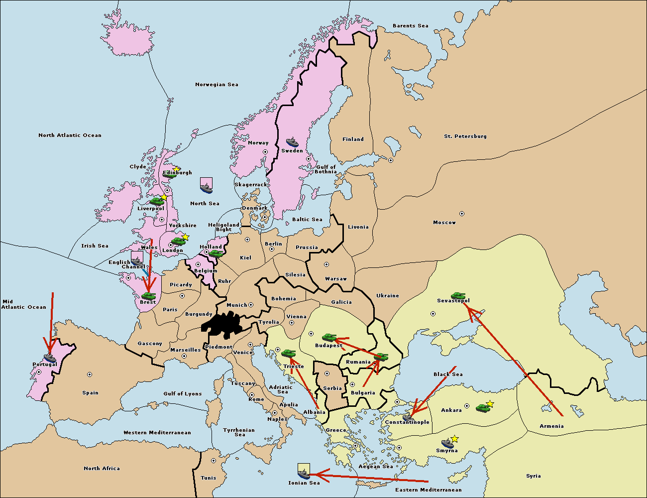 The fleet at North Africa move to Mid-Atlantic Ocean.