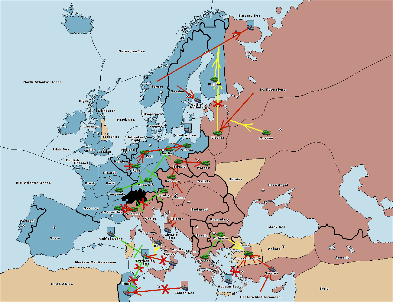 The fleet at Bulgaria (South Coast) move to Greece.