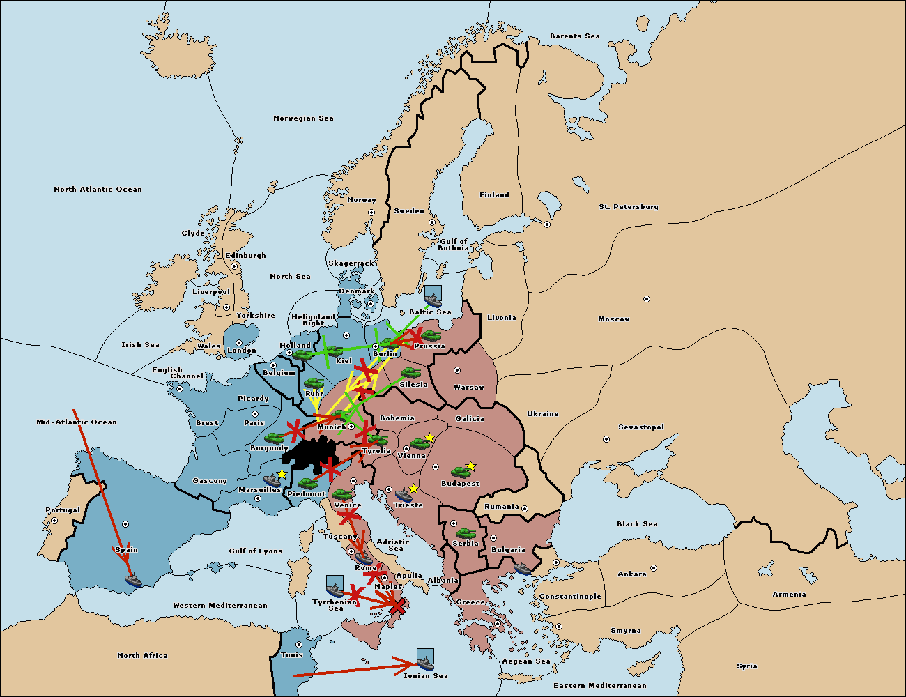 The fleet at Tyrrhenian Sea support hold to Tunis.