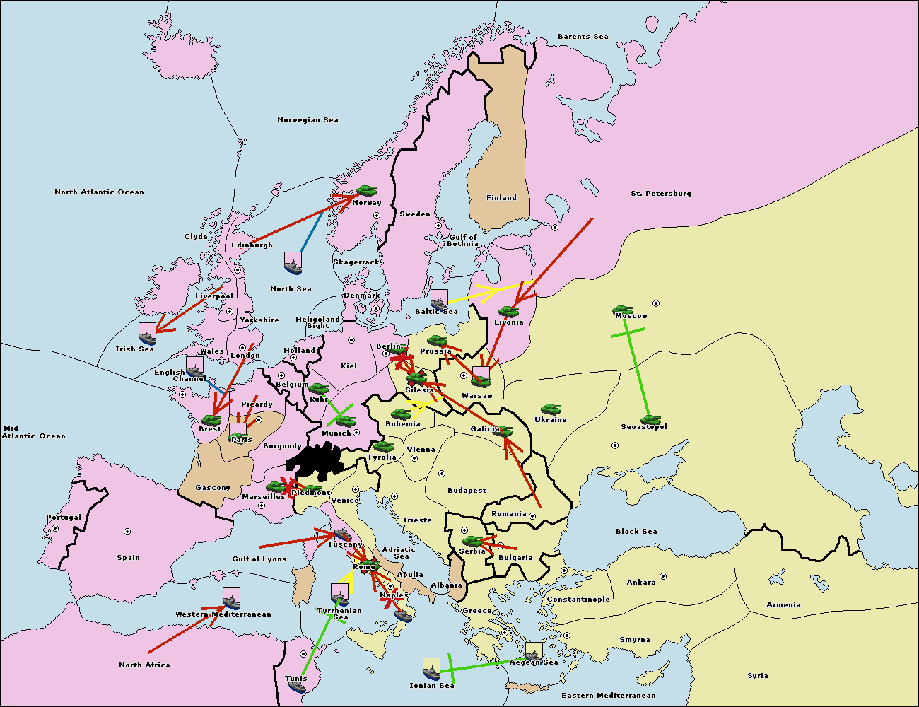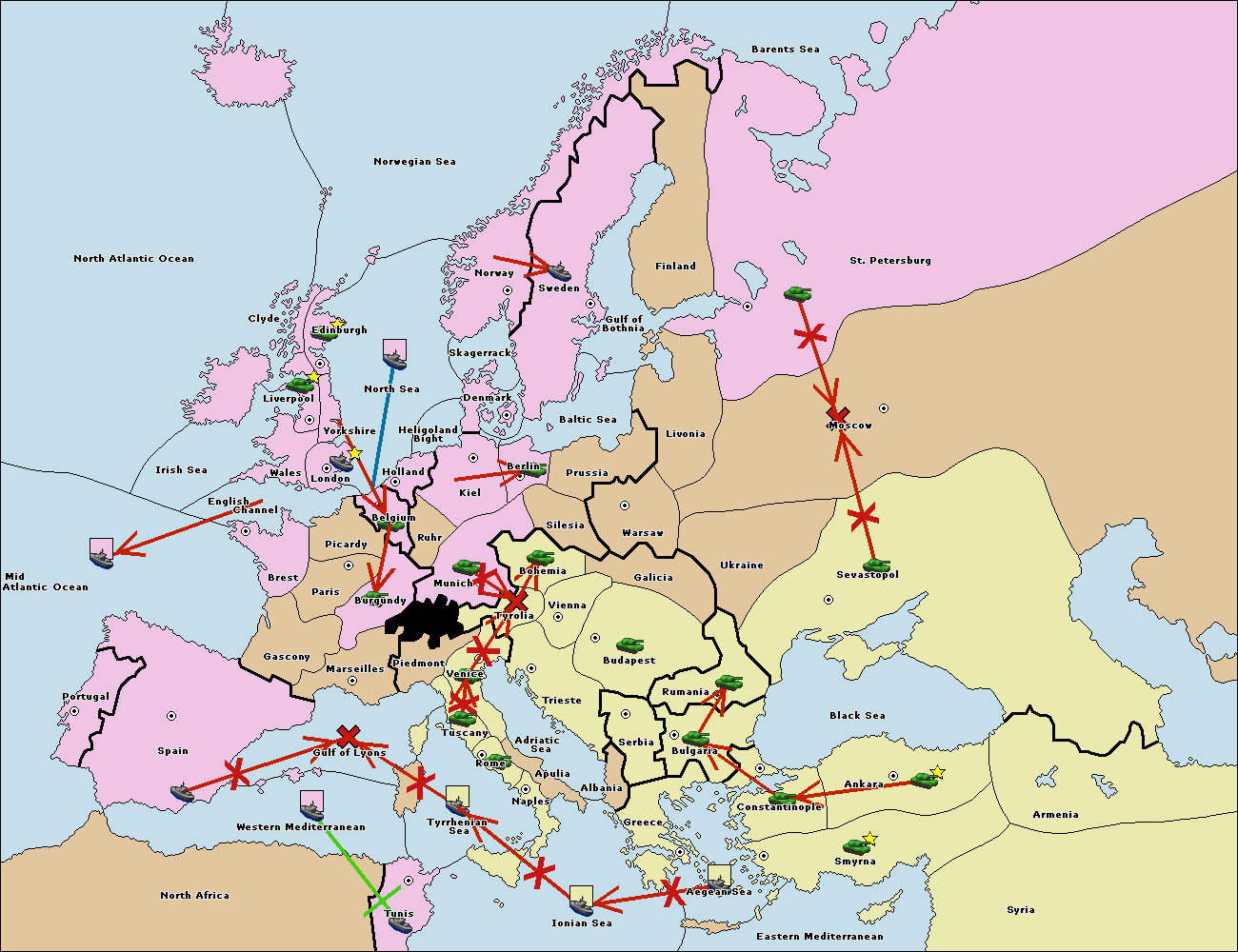 The fleet at Tyrrhenian Sea support move to Tunis from Ionian Sea.