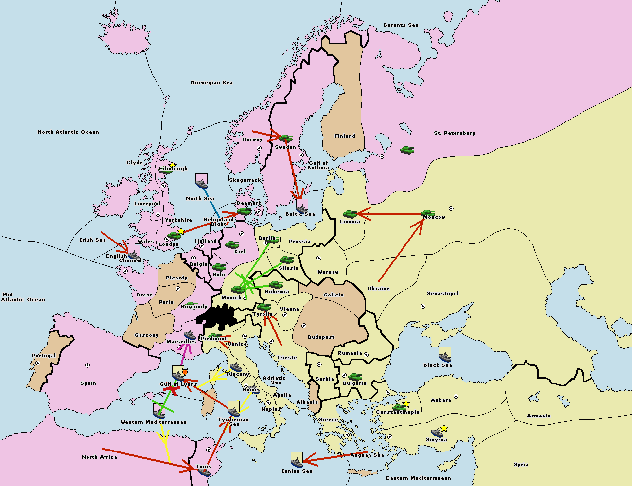 The fleet at Mid-Atlantic Ocean move to Western Mediterranean.