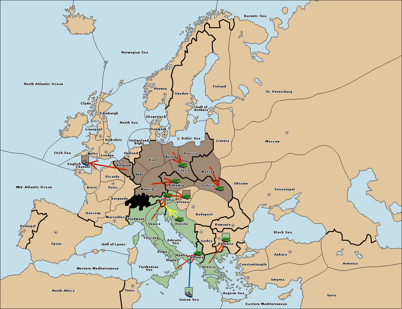 The army at Tyrolia support move to Vienna from Trieste.