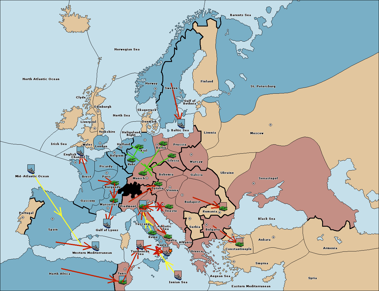 The fleet at Spain (South Coast) move to Western Mediterranean.