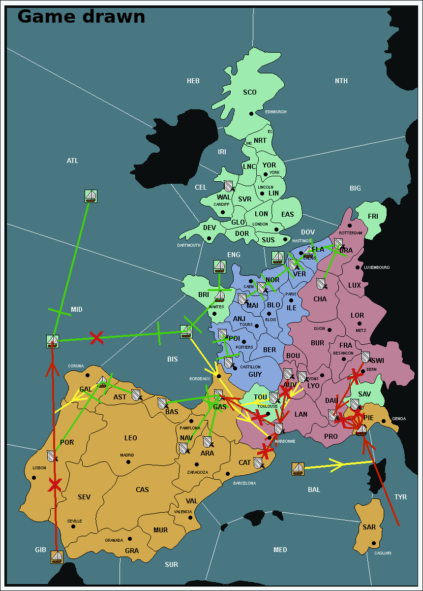 The fleet at Mid-Atlantic (MID) move to Portugal (POR).