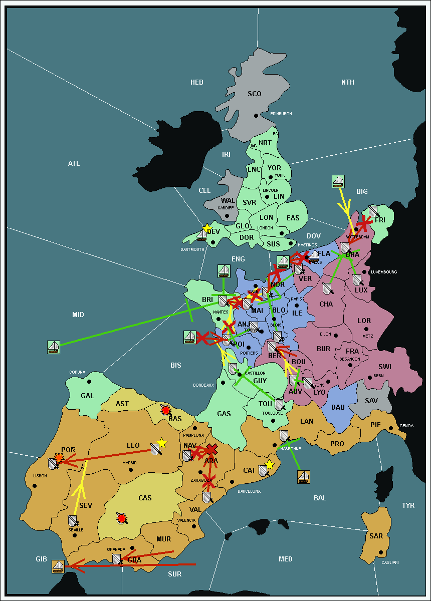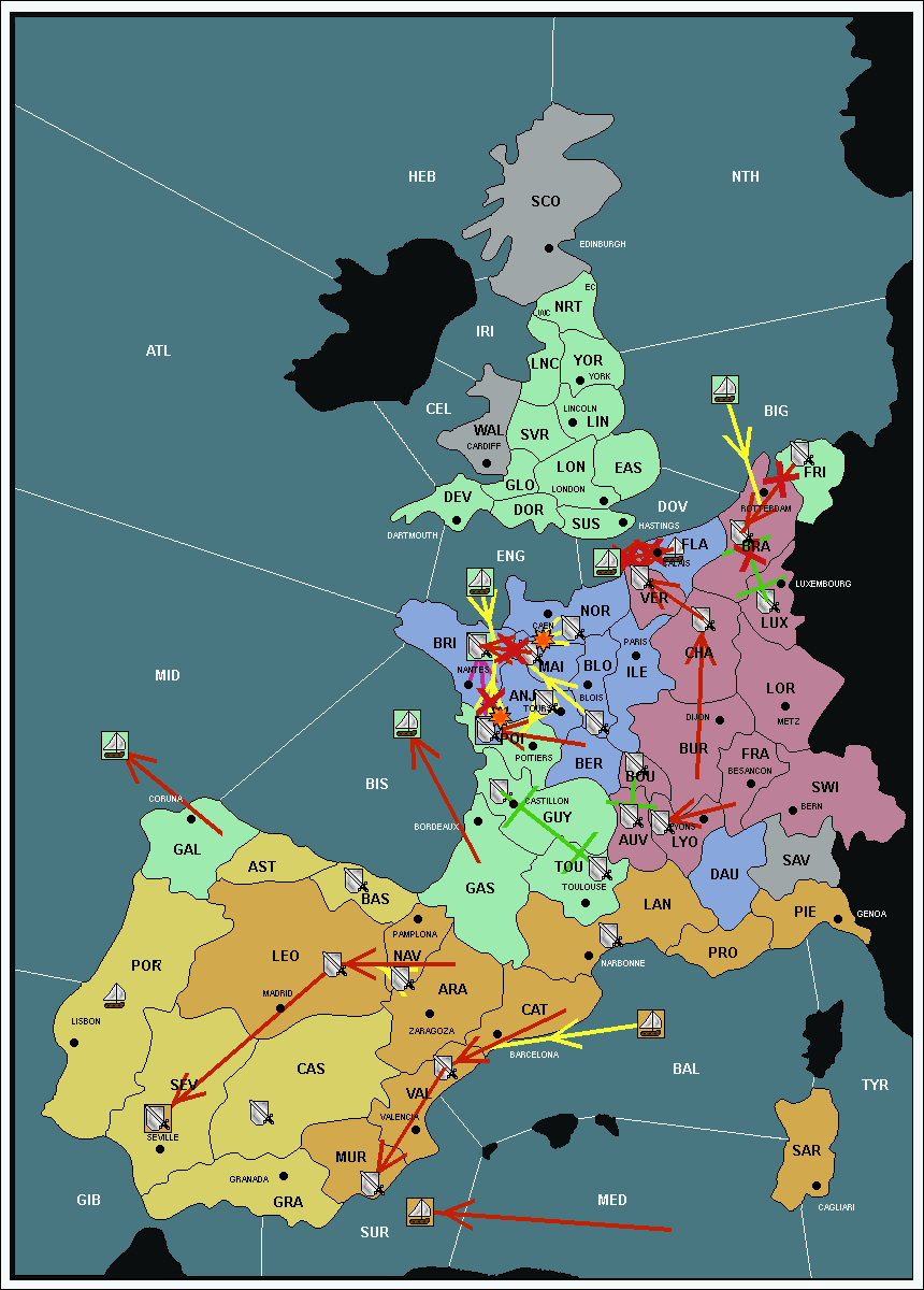 The fleet at Bay of Biscay (BIS) support hold to Brittany (BRI).