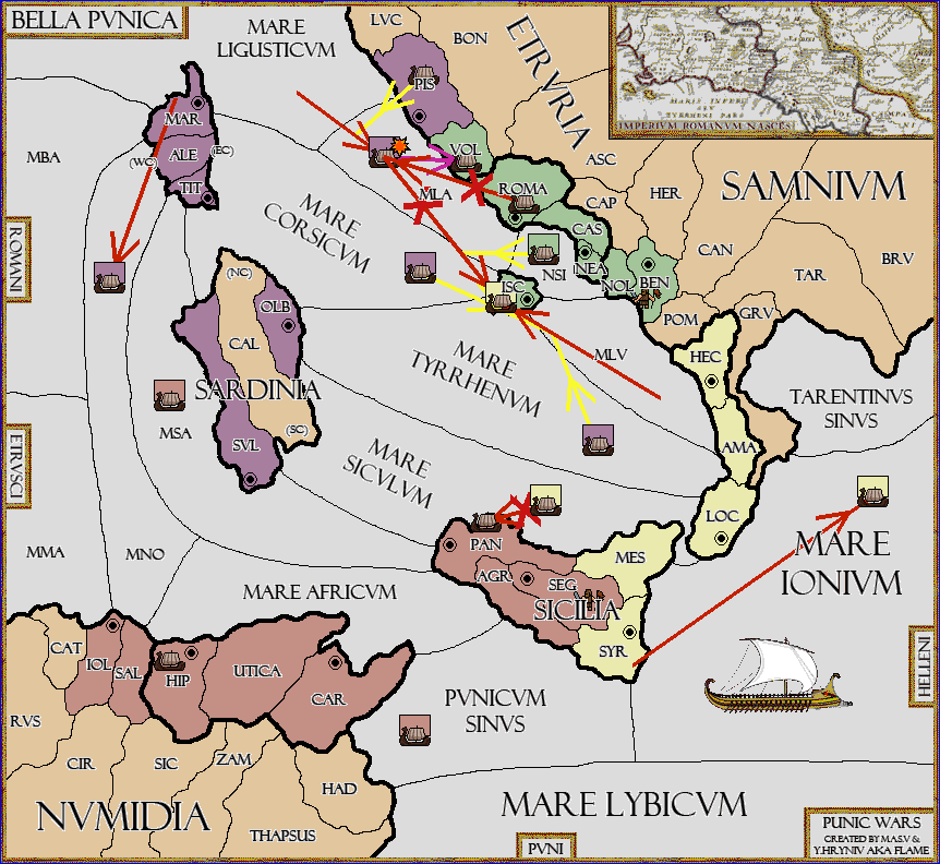 The fleet at Mare Tyrrhenum move to Mare Corsicum.