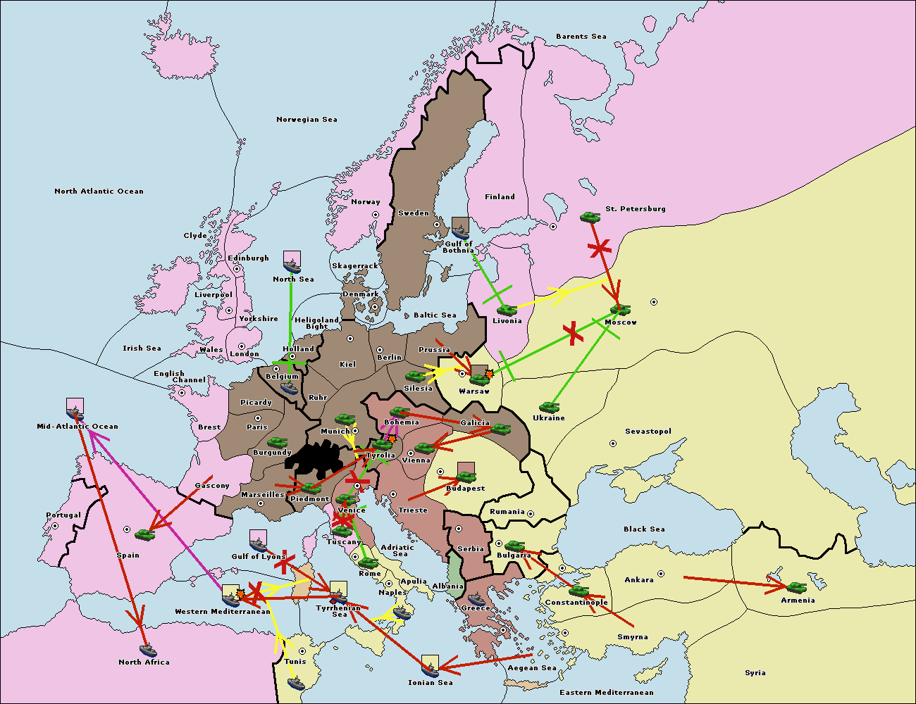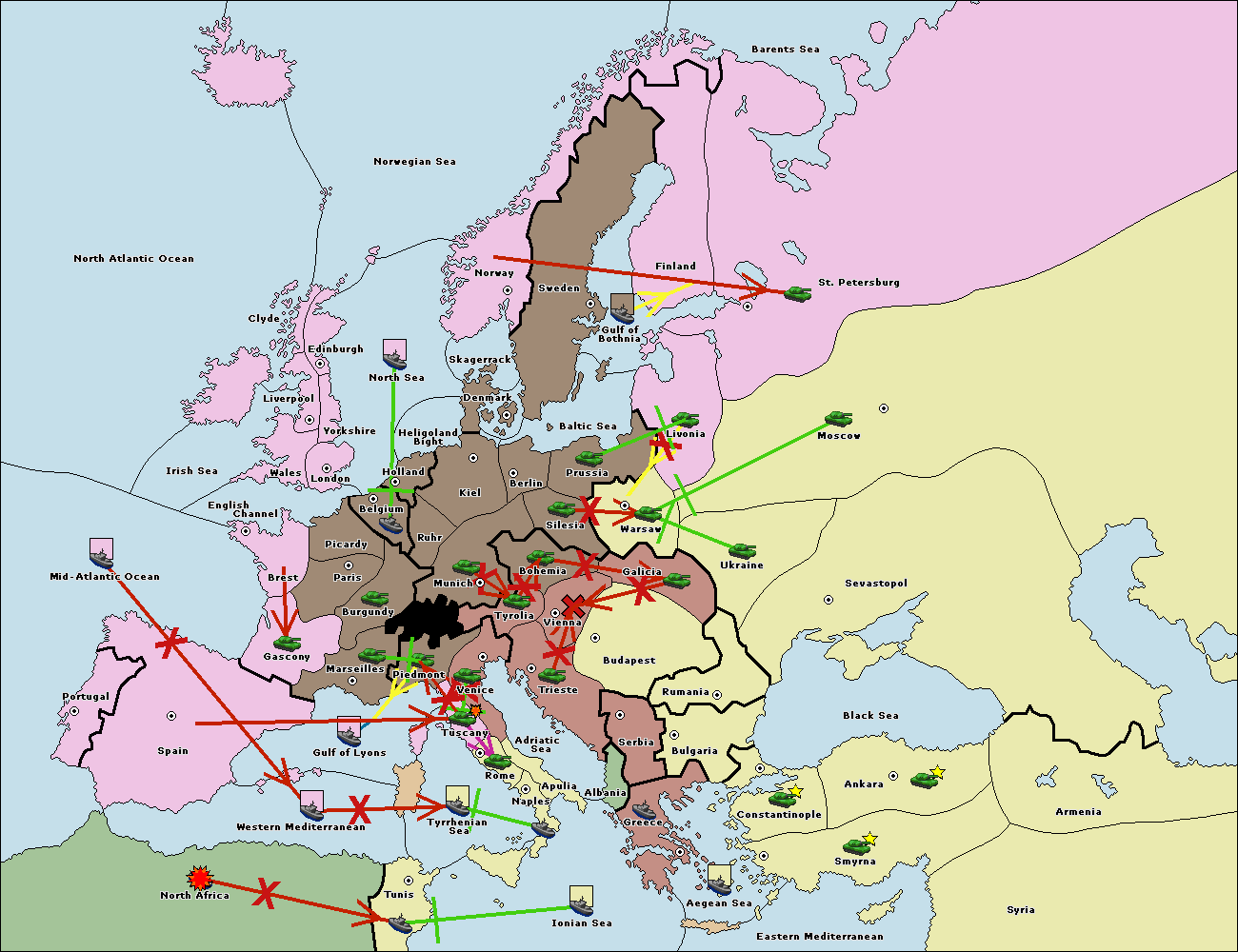 The army at Tyrolia move to Trieste.