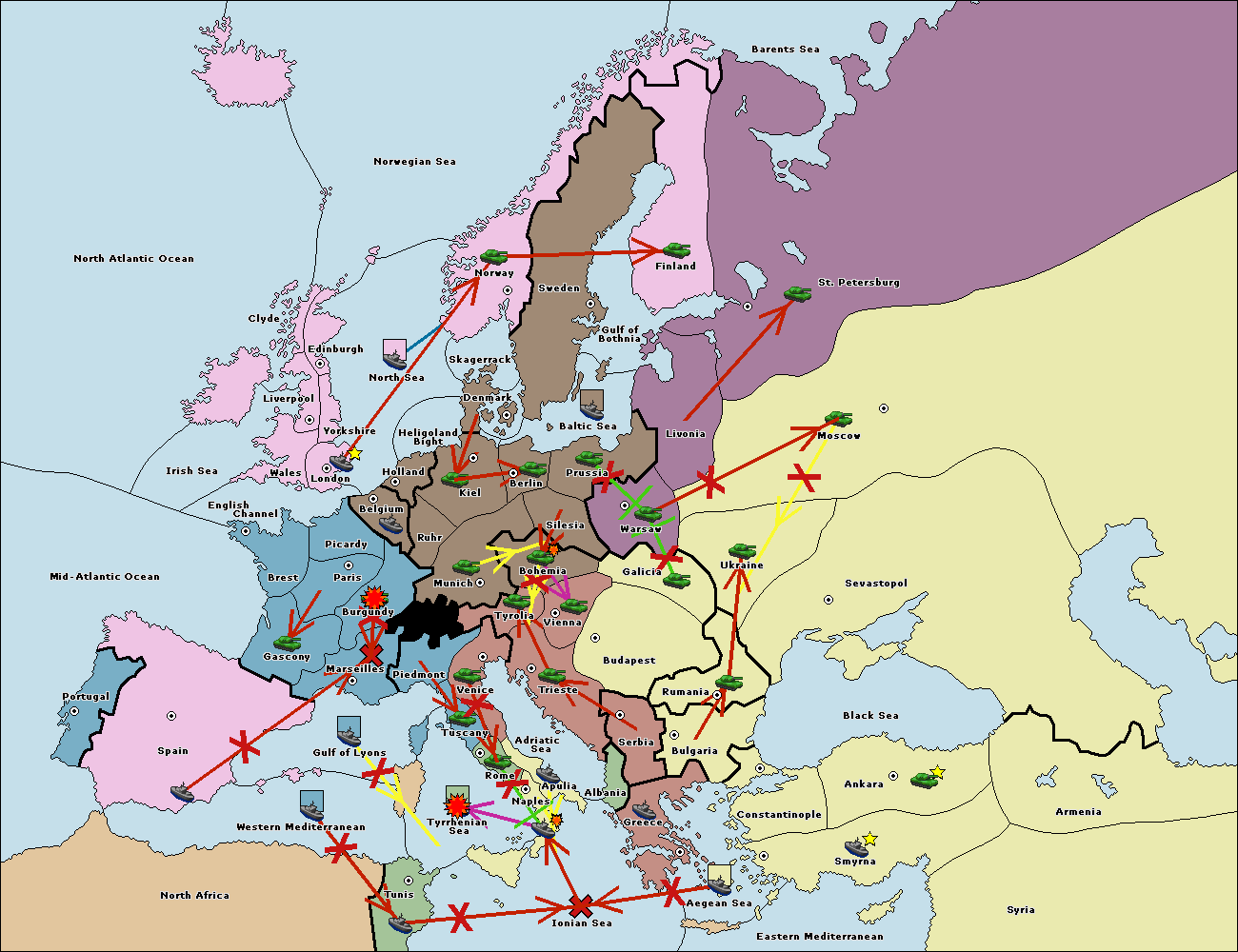 The fleet at Western Mediterranean move to Tyrrhenian Sea.