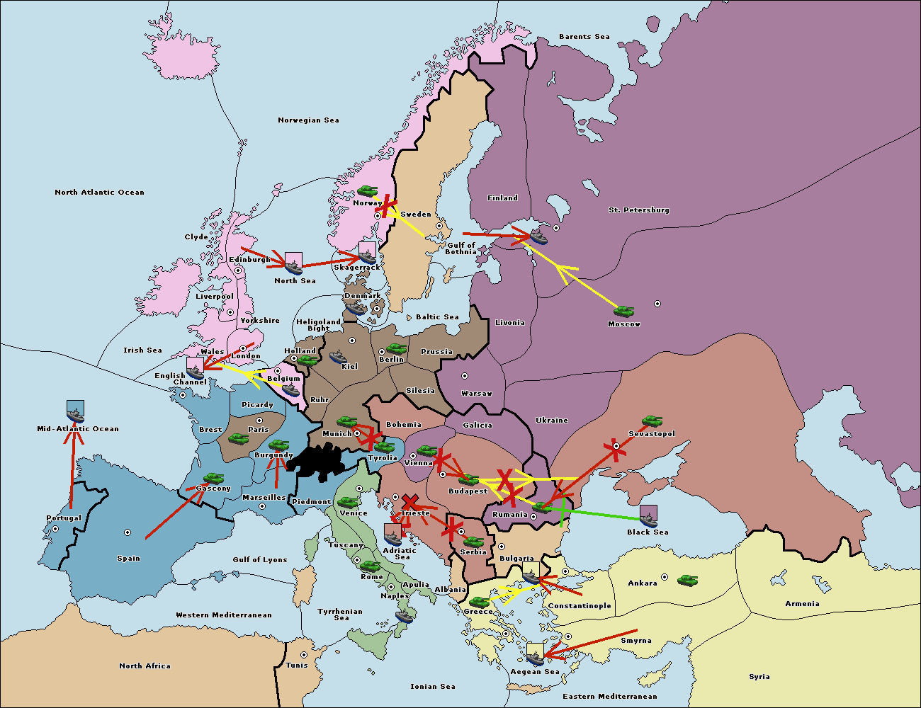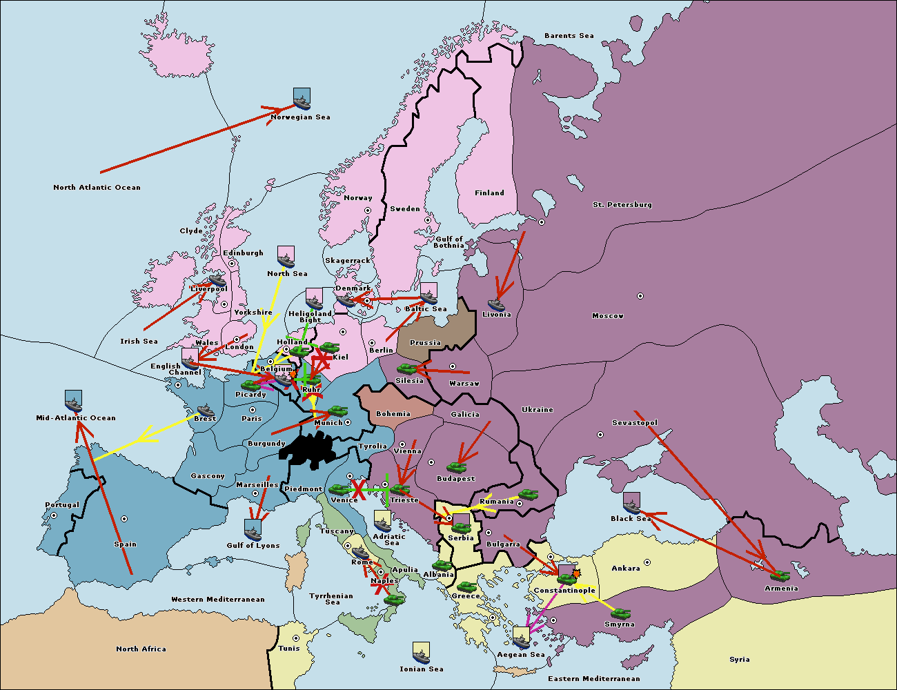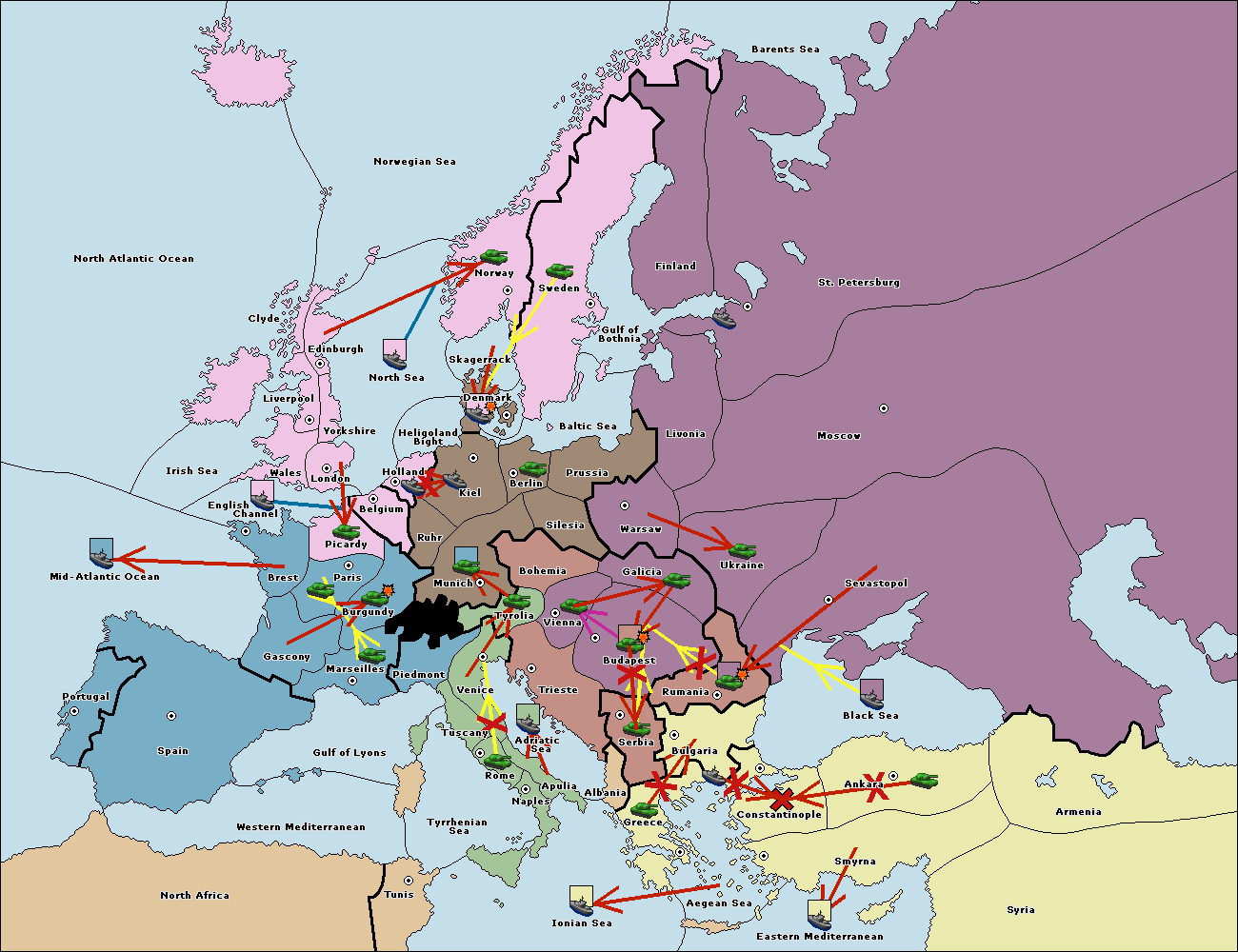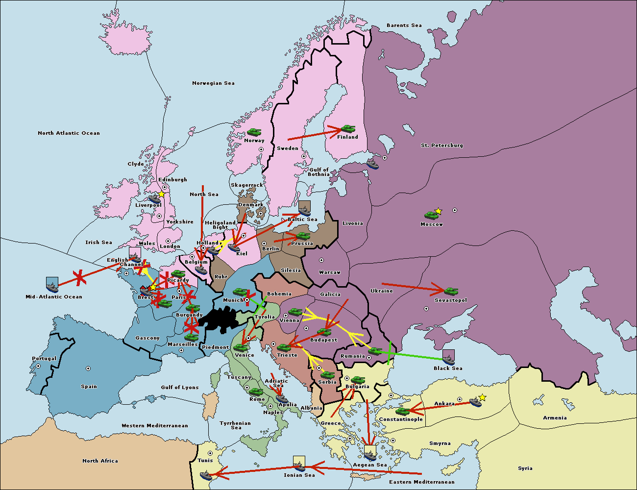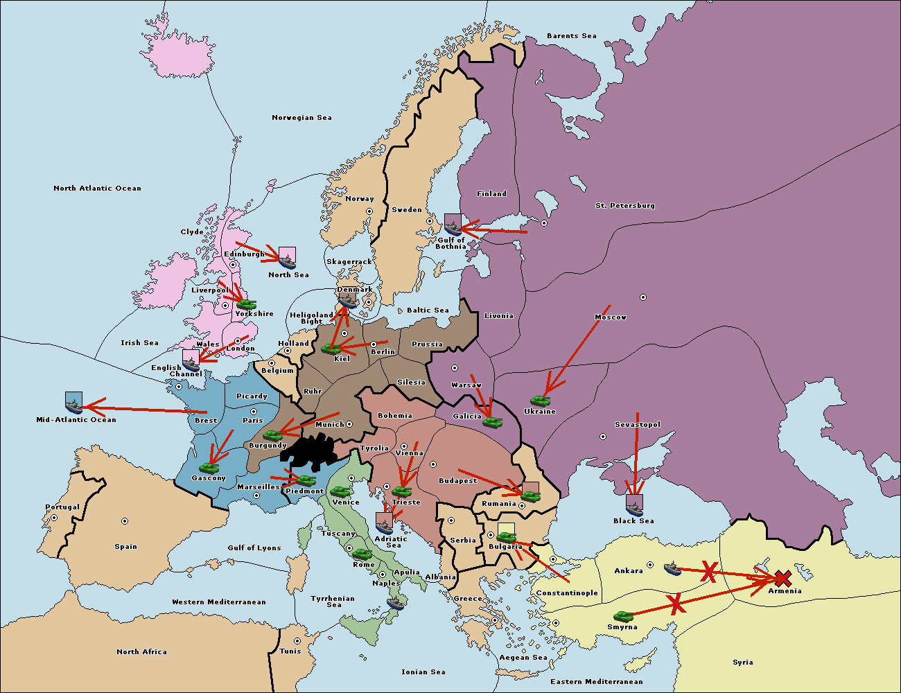 The fleet at Bulgaria (South Coast) move to Constantinople.
