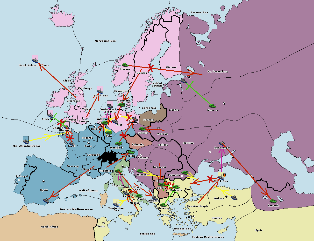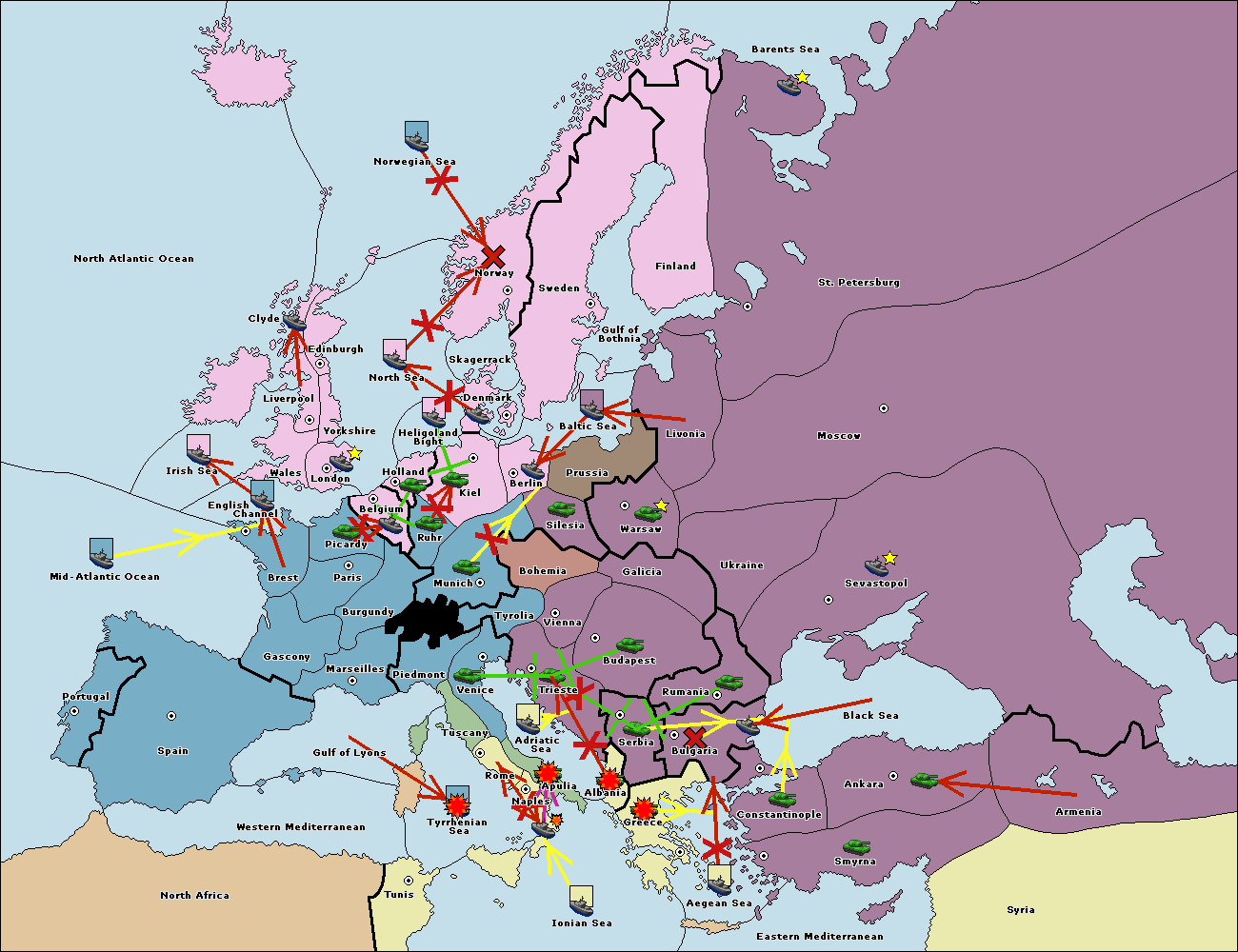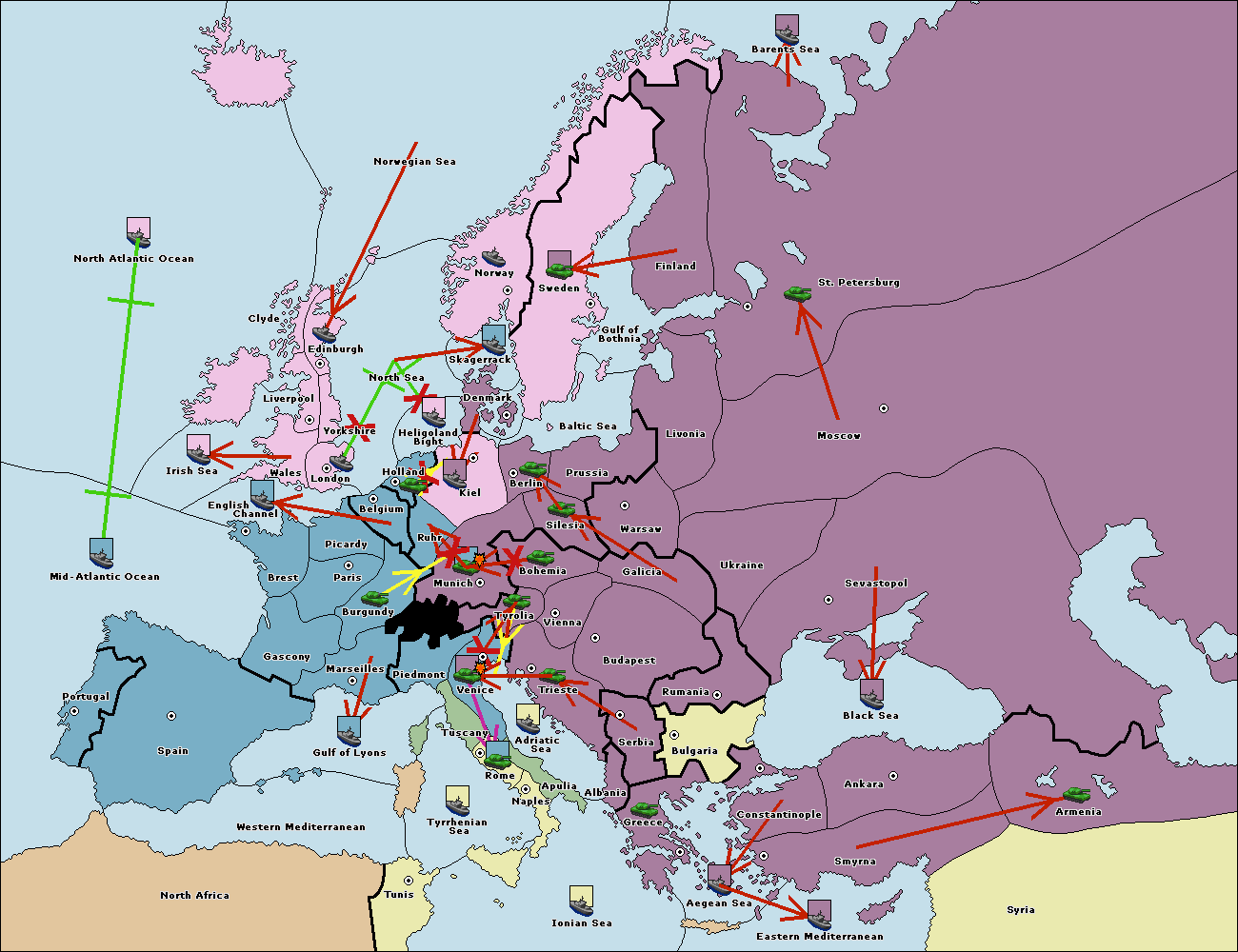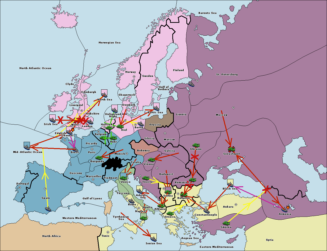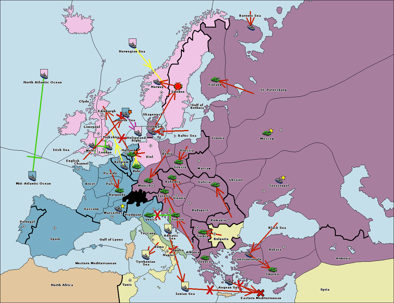The fleet at Bulgaria (South Coast) move to Constantinople.