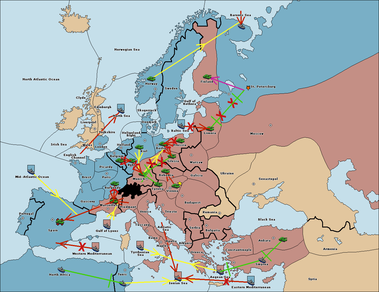 The fleet at Bulgaria (South Coast) move to Aegean Sea.