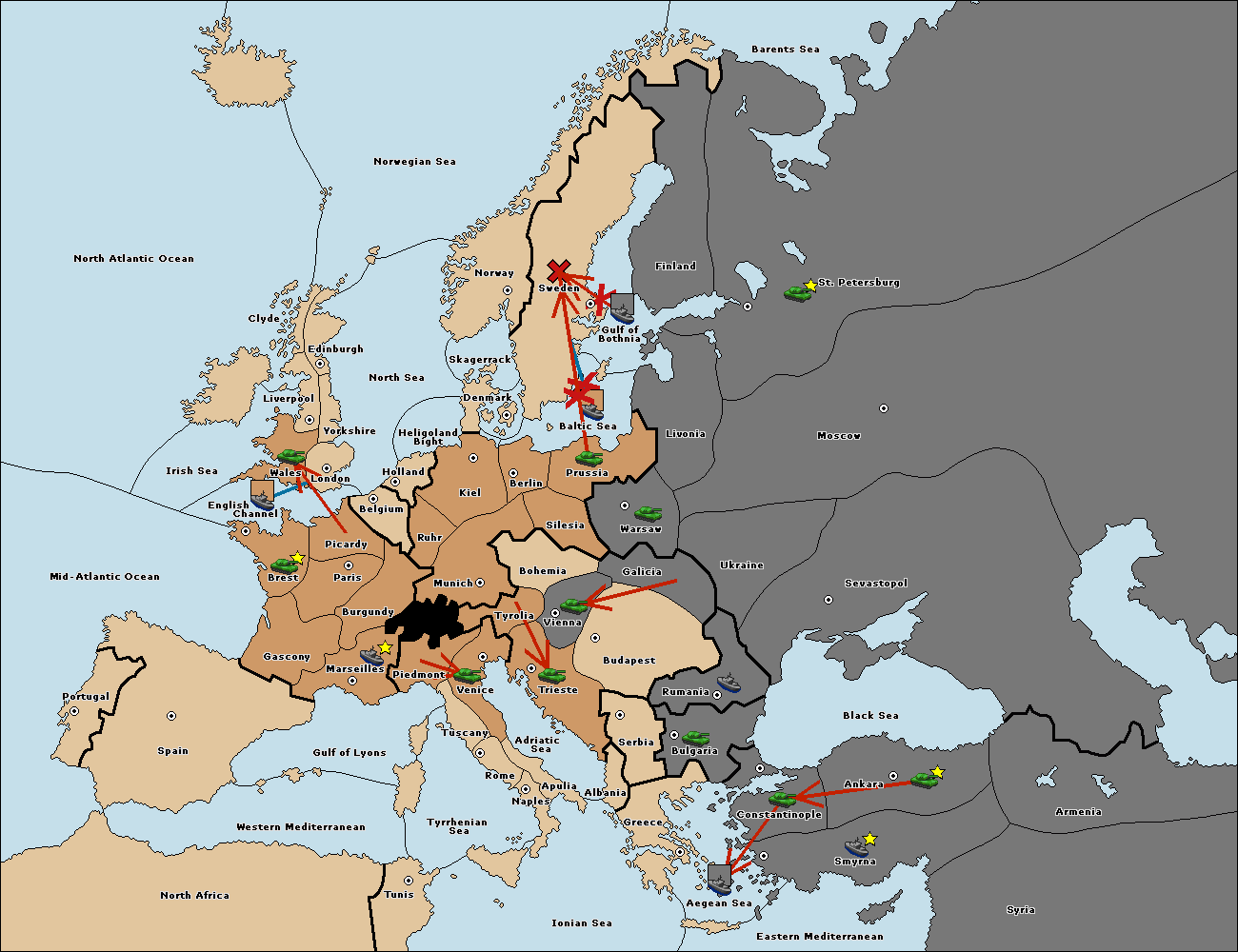 The army at Tyrolia support move to Trieste from Vienna.