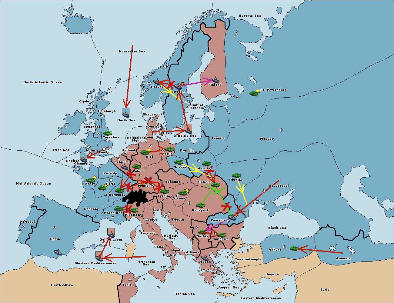 The army at Kiel support move to Munich from Tyrolia.