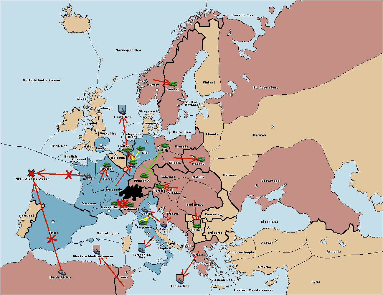 The fleet at Mid-Atlantic Ocean move to Western Mediterranean.