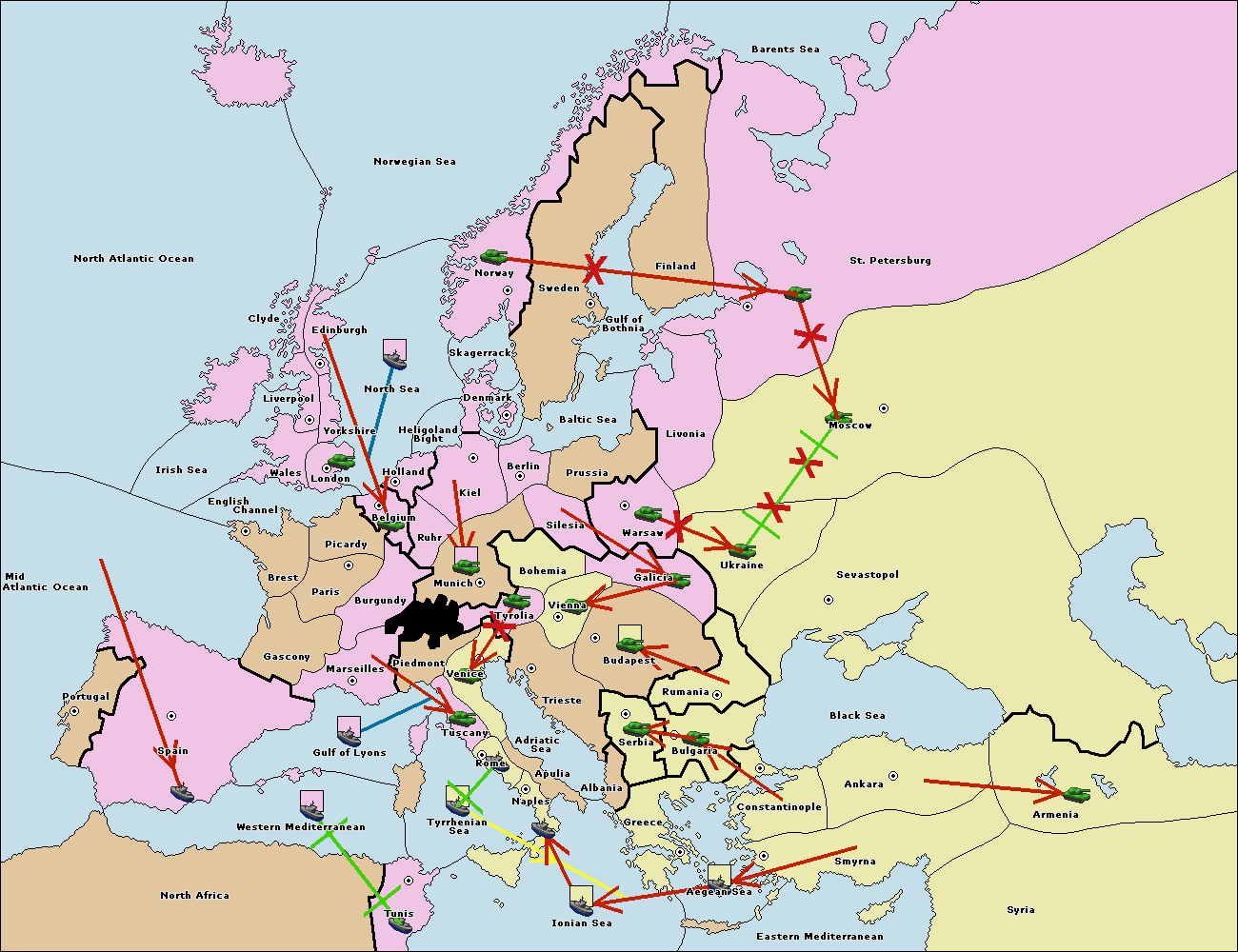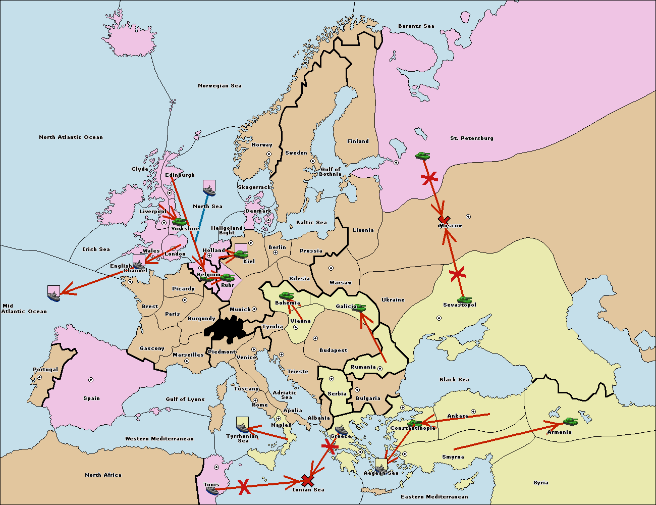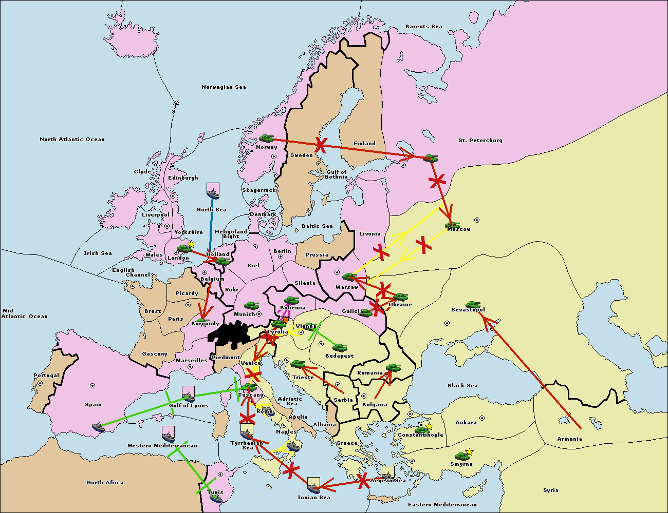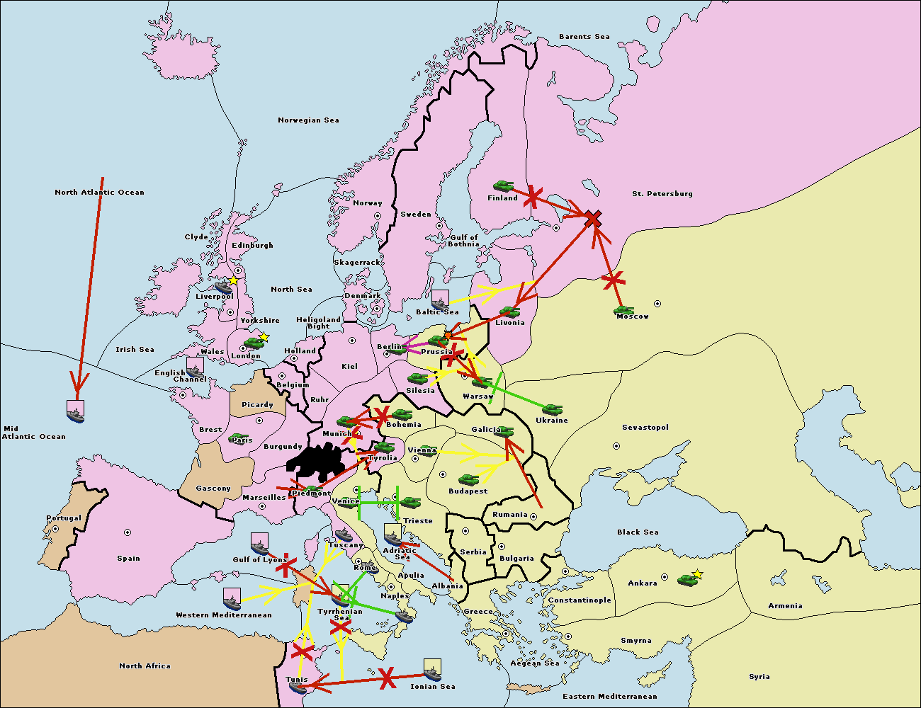 The fleet at Mid-Atlantic Ocean move to Western Mediterranean.