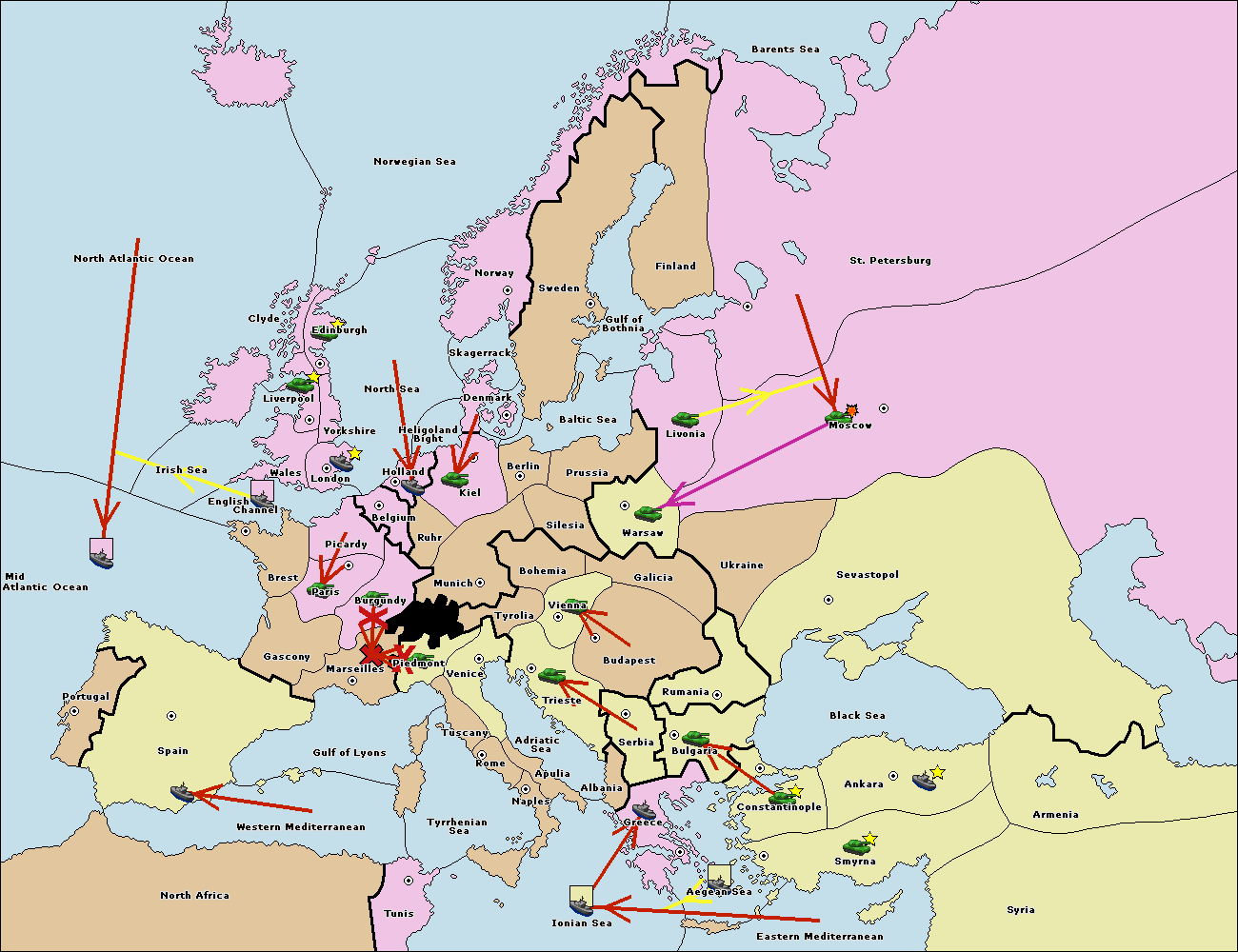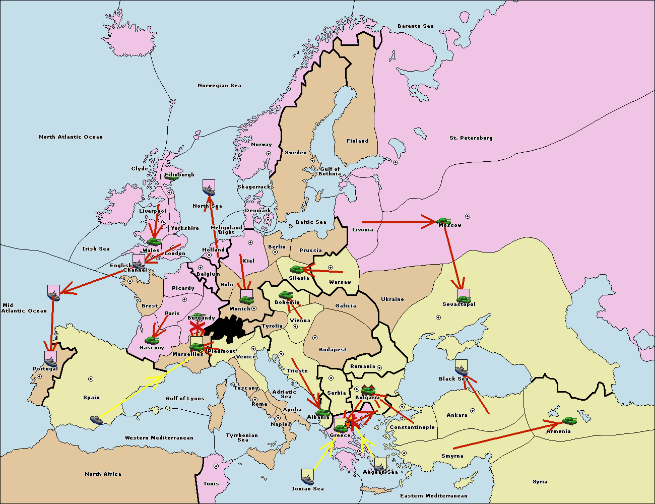 The fleet at Spain (South Coast) support move to Marseilles from Piedmont.
